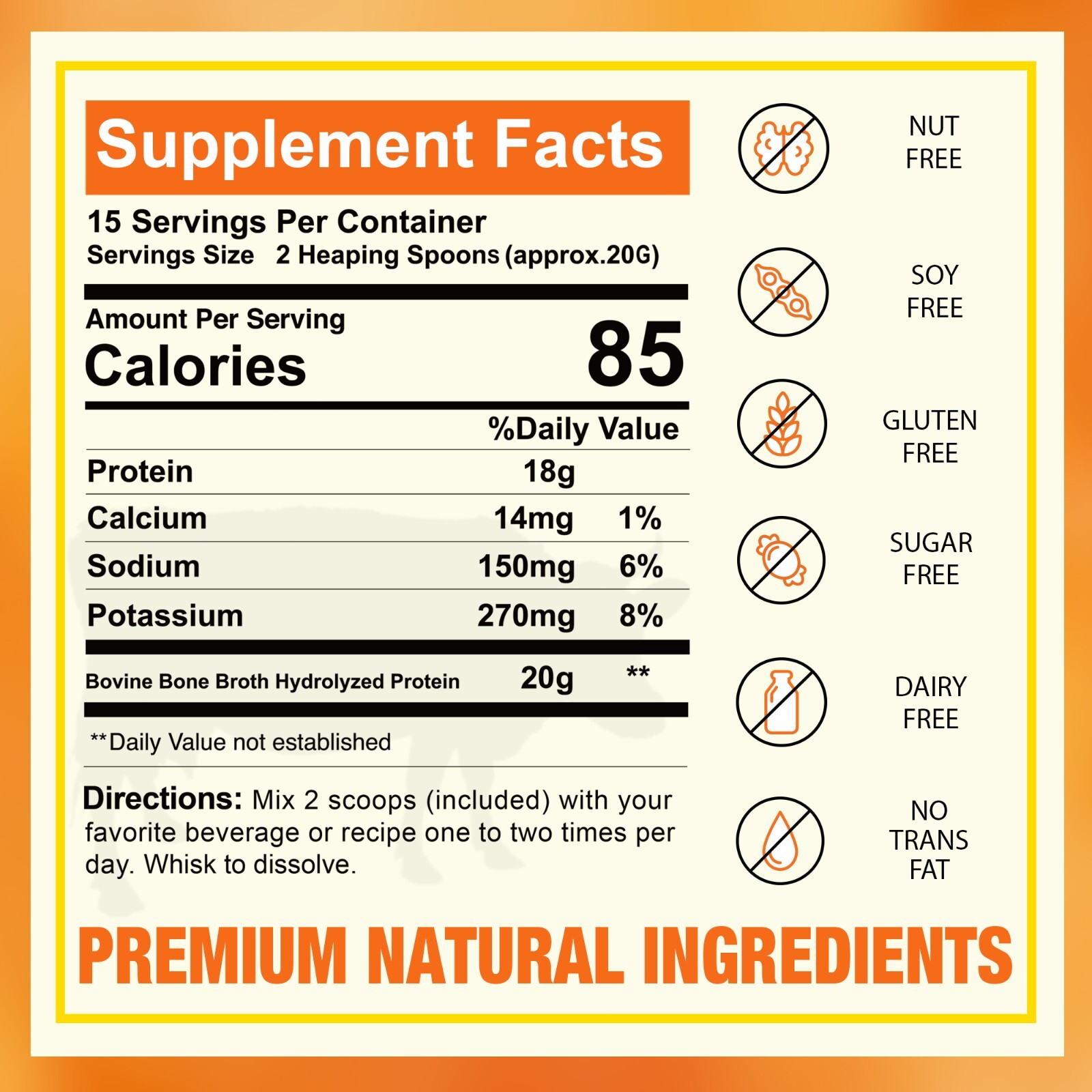 Grass Fed Beef Bone Broth Protein Powder - Organics Natural Flavor, 10.59oz