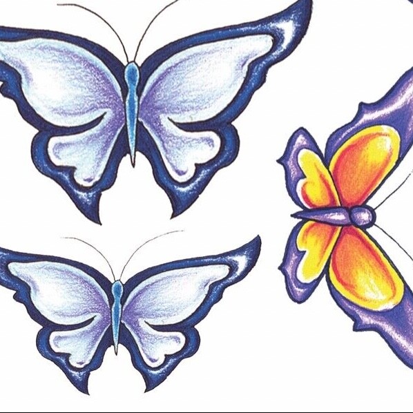 Butterflies colored, Temp Tattoo 4-5 . Peel and stick Laser printed