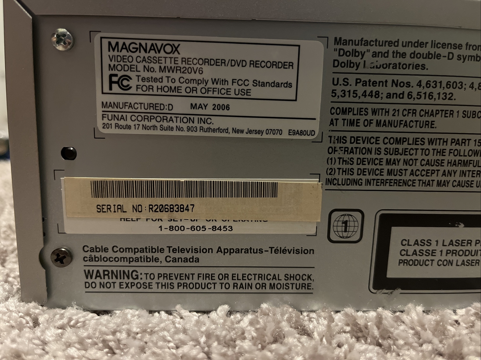 как выглядит Magnavox MWR20V6 DVD/VCR Recorder - for parts / Repair фото