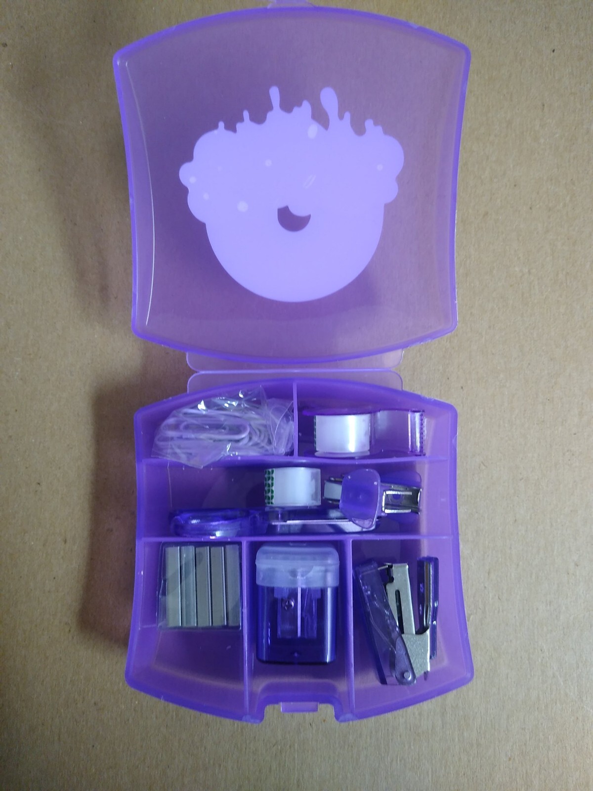 как выглядит 9 pc. Mini office Travel supply kit scissors sharpener stapler tipe dispenser фото