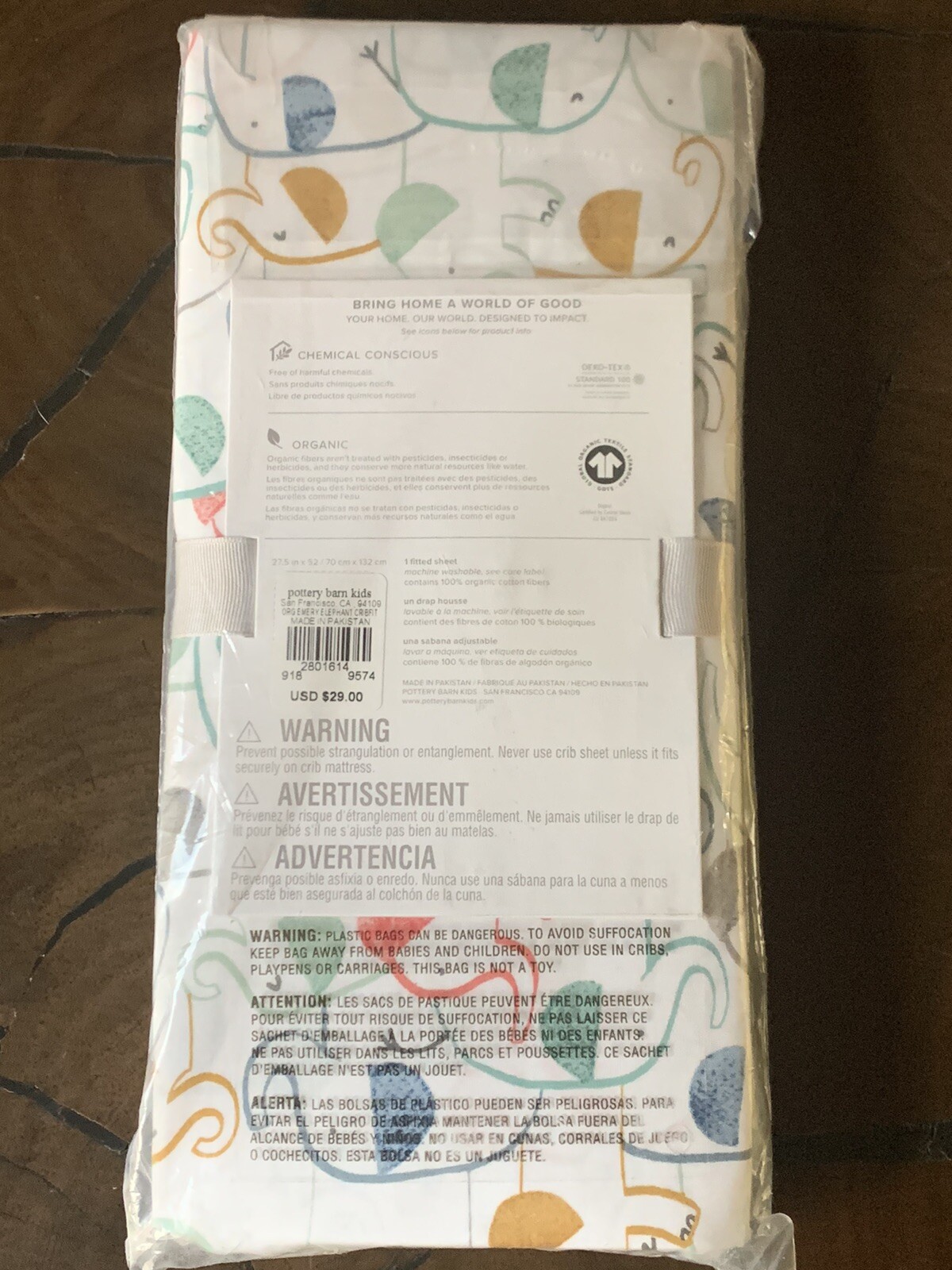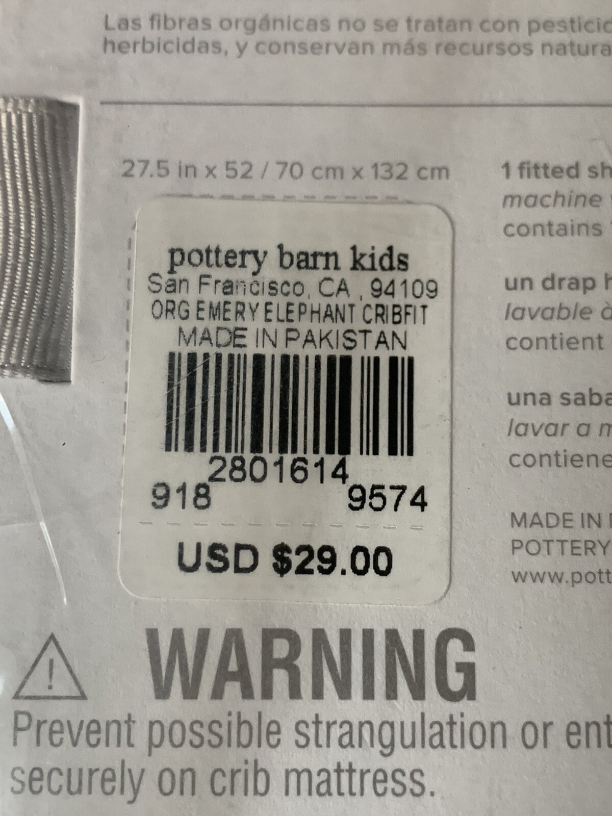 NWT Pottery Barn Kids EMERY ELEPHANT Organic Crib Fitted Sheet Nursery Toddler