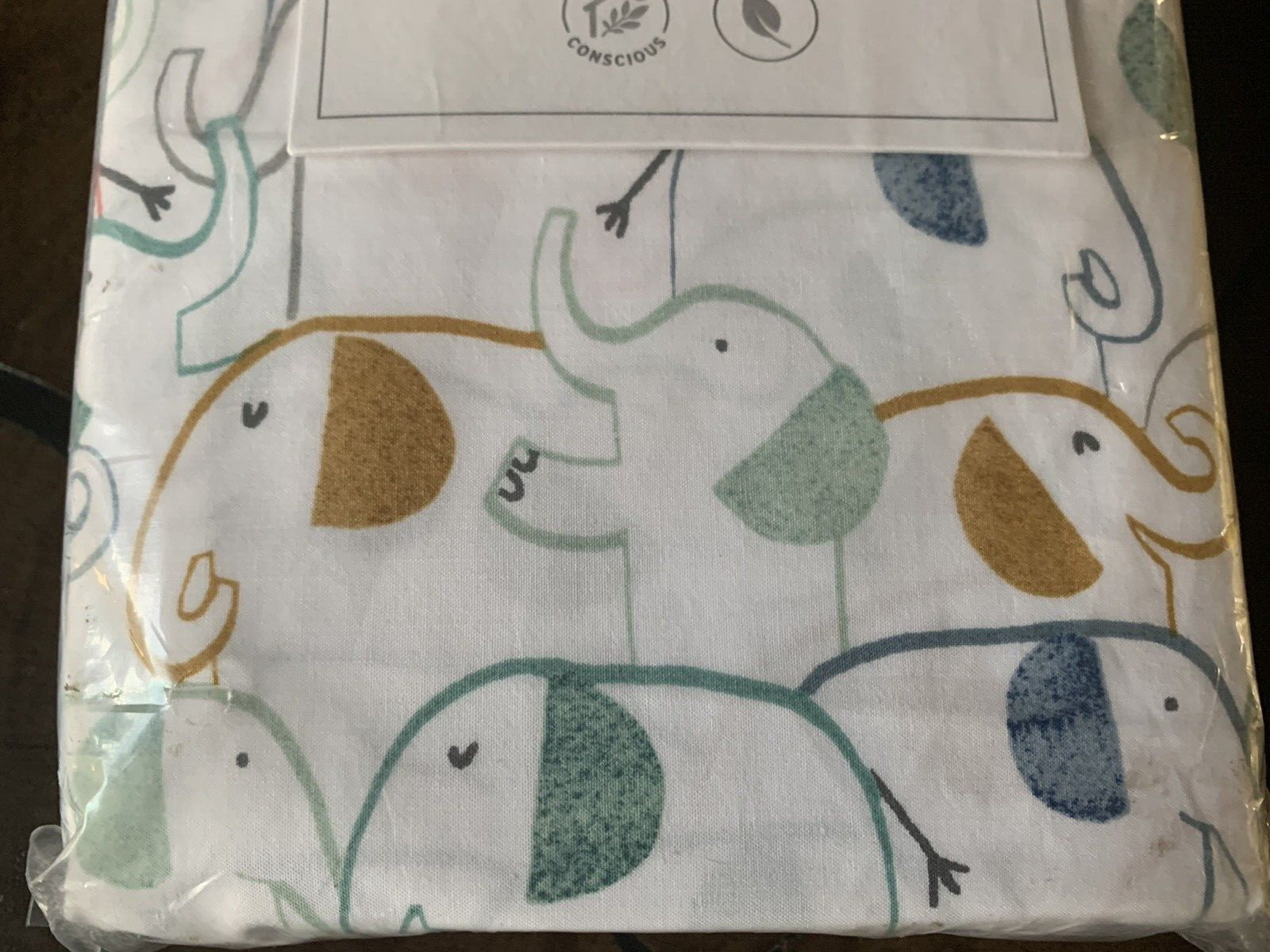 как выглядит NWT Pottery Barn Kids EMERY ELEPHANT Organic Crib Fitted Sheet Nursery Toddler фото