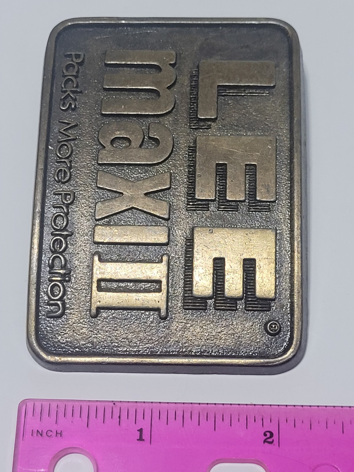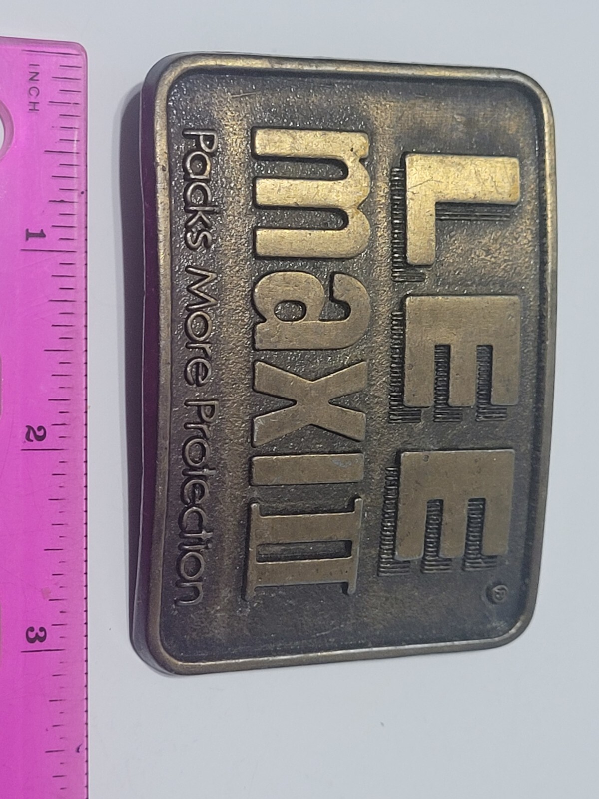 Brass Belt Buckle Vintage Lee Maxi II Rocks More Protection 3x2 Mens Accessory