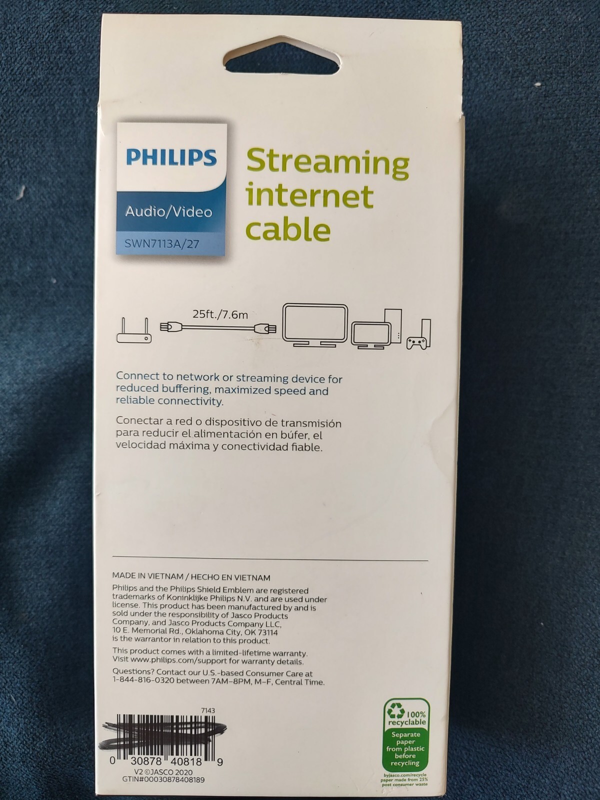 Phillips Streaming Internet Cable NEW 25 Ft Cat5e Network Audio/video Ethernet