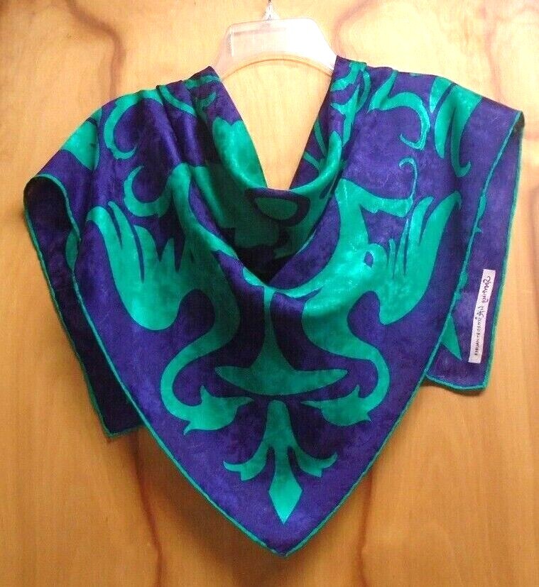 Sporting Life Styled by Hauber Bright Green Purple Swans Design Silk Scarf