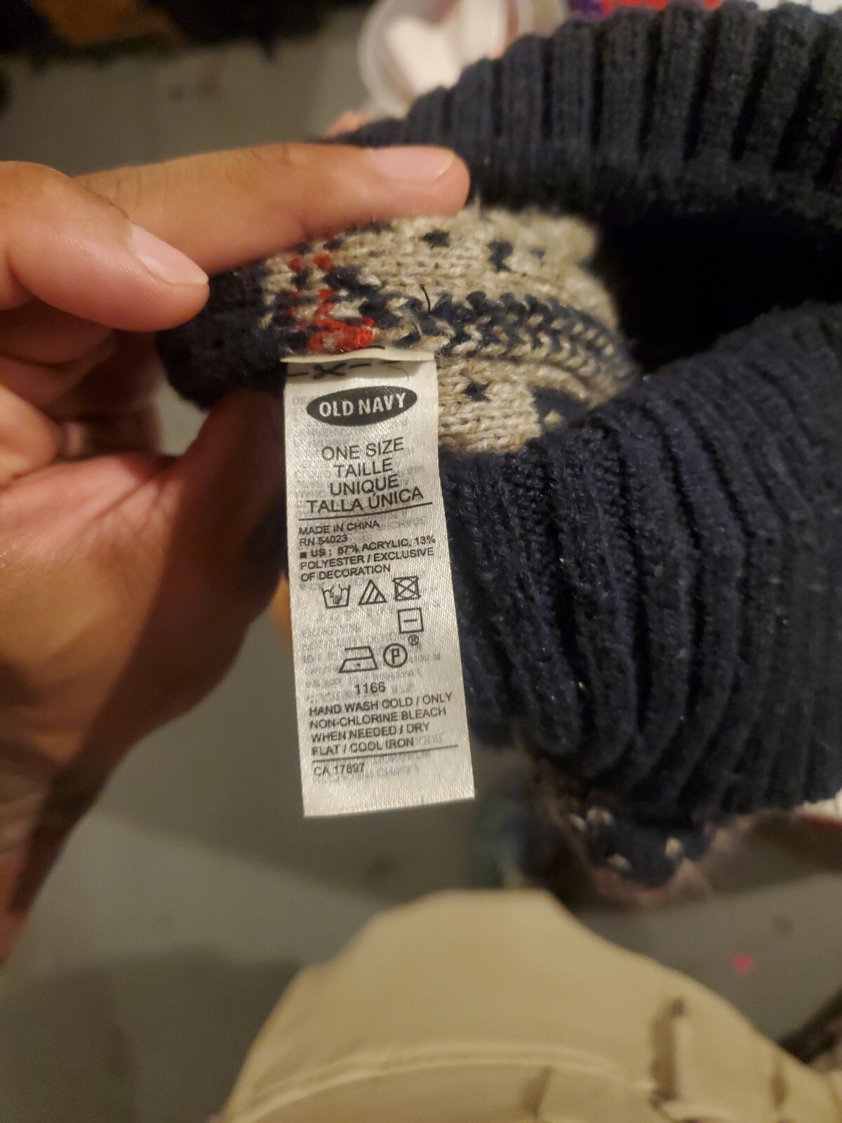 как выглядит Old Navy Patterned Sweater Beanie with Pom Blue gray red unisex фото