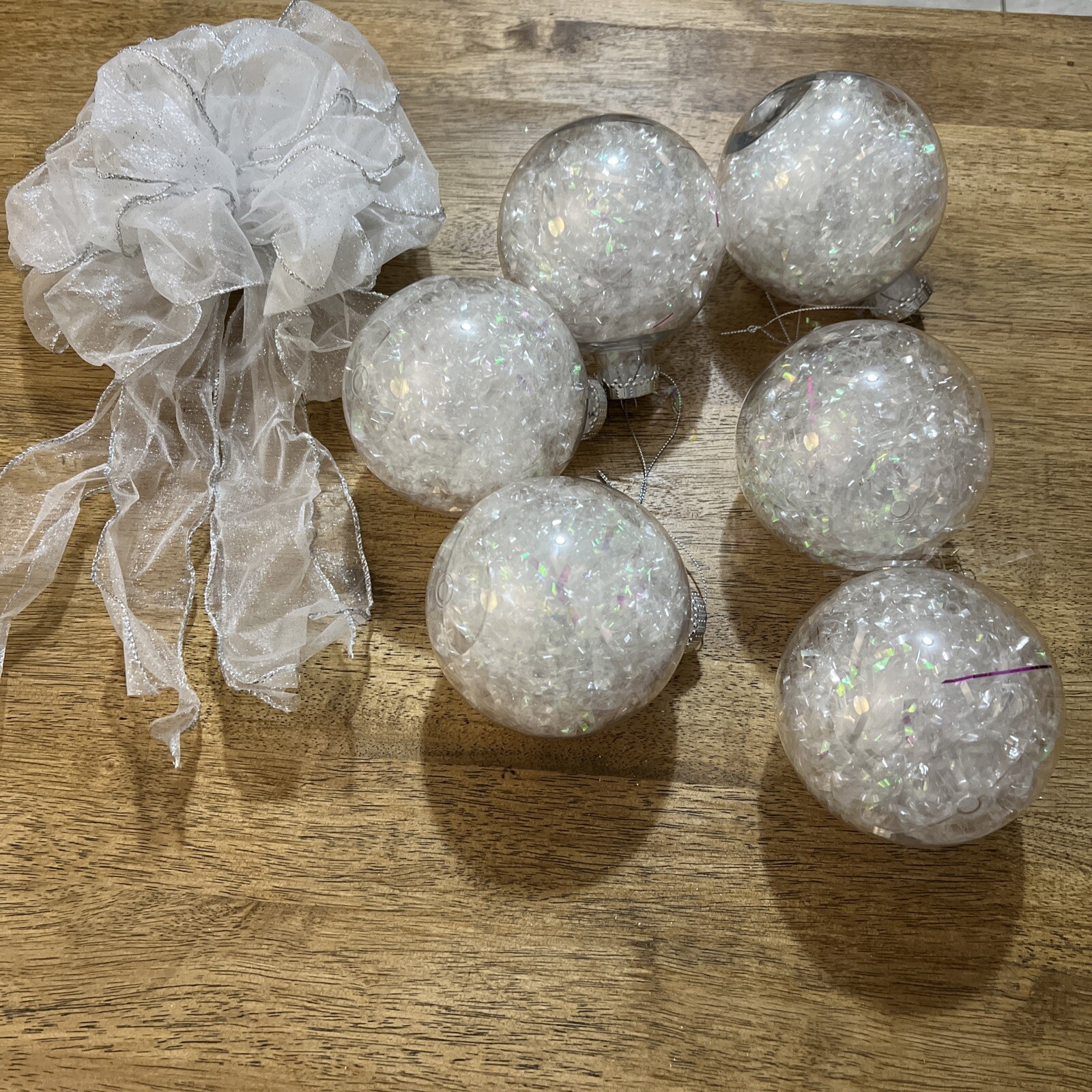 6 PCS Christmas Ball Plastic Baubles 4.5 In Clear Bow Tree Decor Ornament