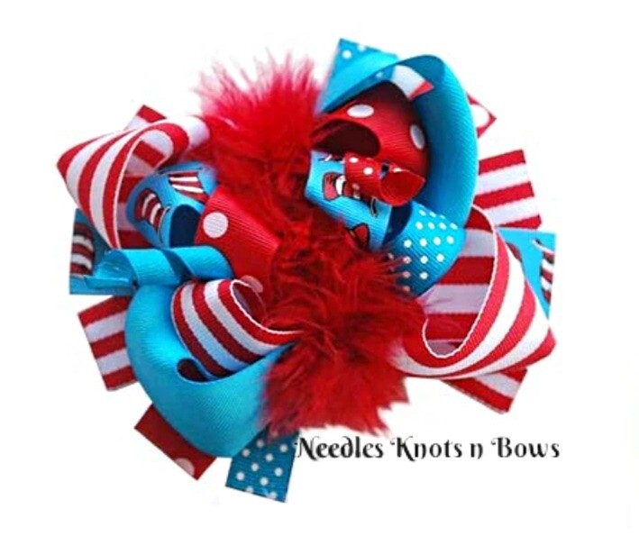 Girls Dr. Suess Inspired OTT Boutique Hair Bow - Headband, Feather Center