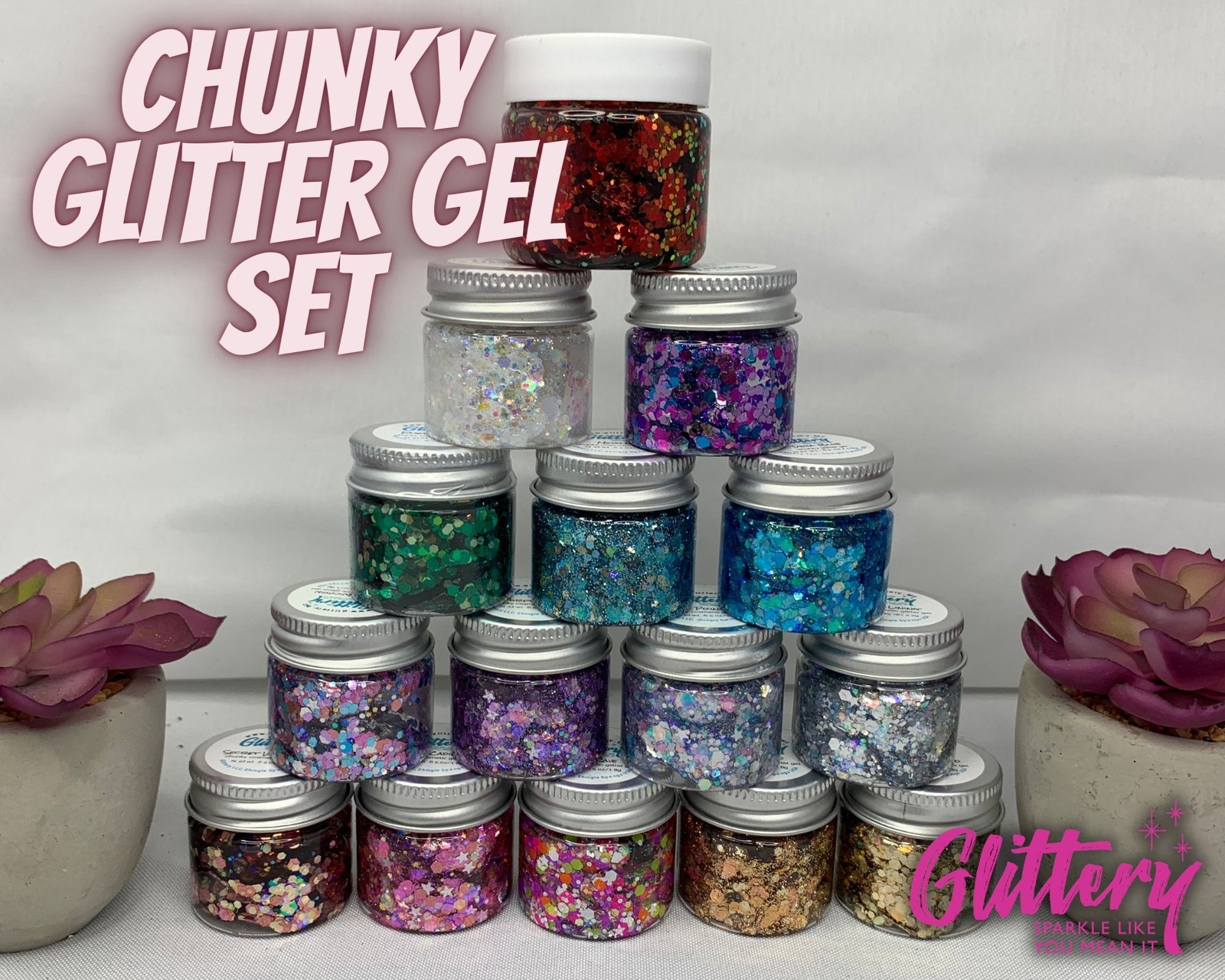 Glitter Set Glittery Chunky Glitter Gels Festival glitter .65 oz Body Safe