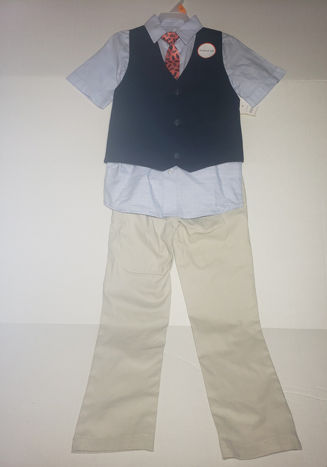 Set Includes: Dress Shirt, Pants, Vest, Tie