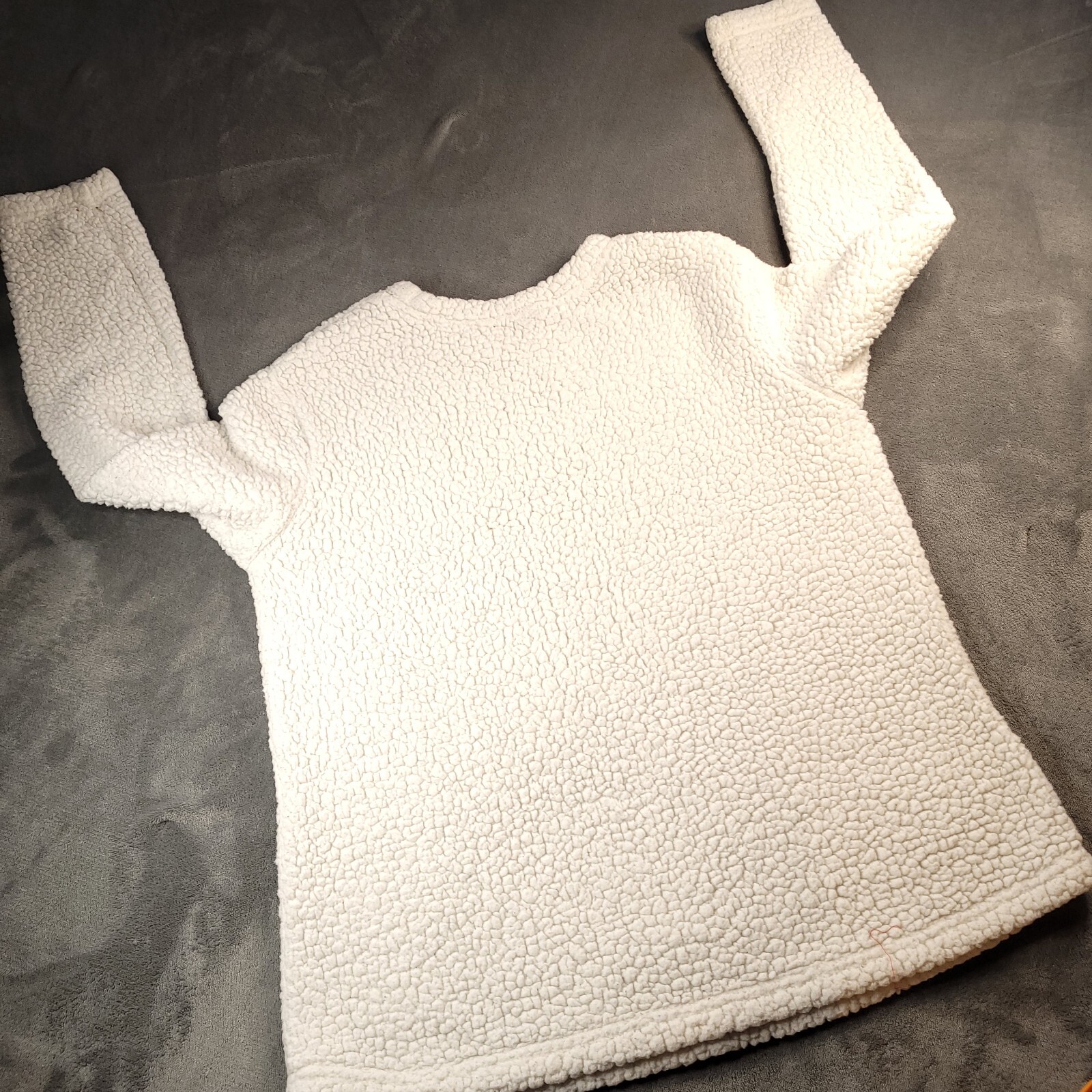 как выглядит Harry Potter Hogwarts Witch Wizardry White Fluffy Small Embroidered Sweater Logo фото