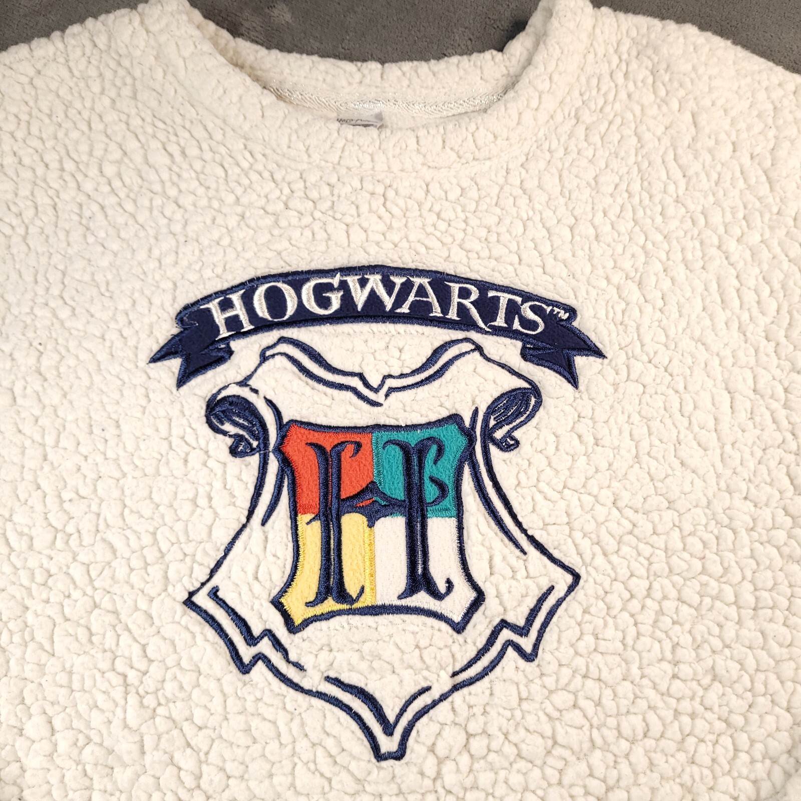 Harry Potter Hogwarts Witch Wizardry White Fluffy Small Embroidered Sweater Logo