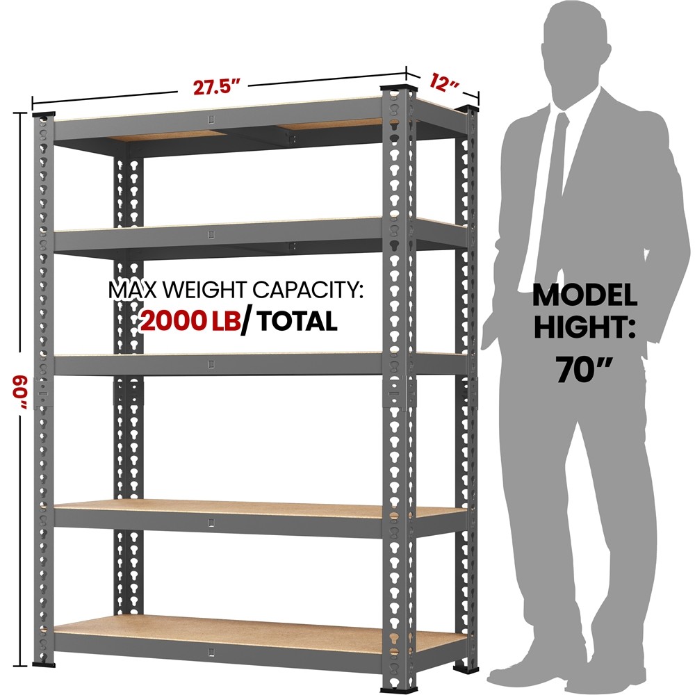5-Tier Heavy Duty Metal Shelving Unit Garage Shelves Utility Rack Adjustable