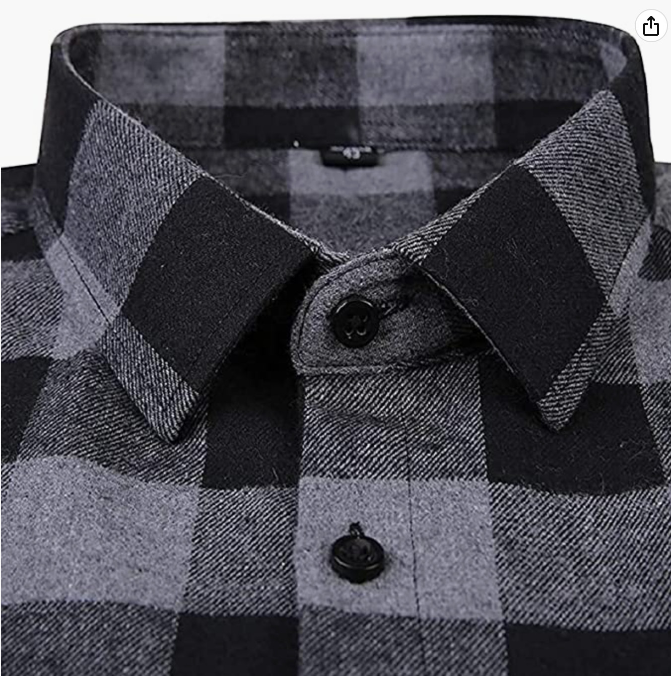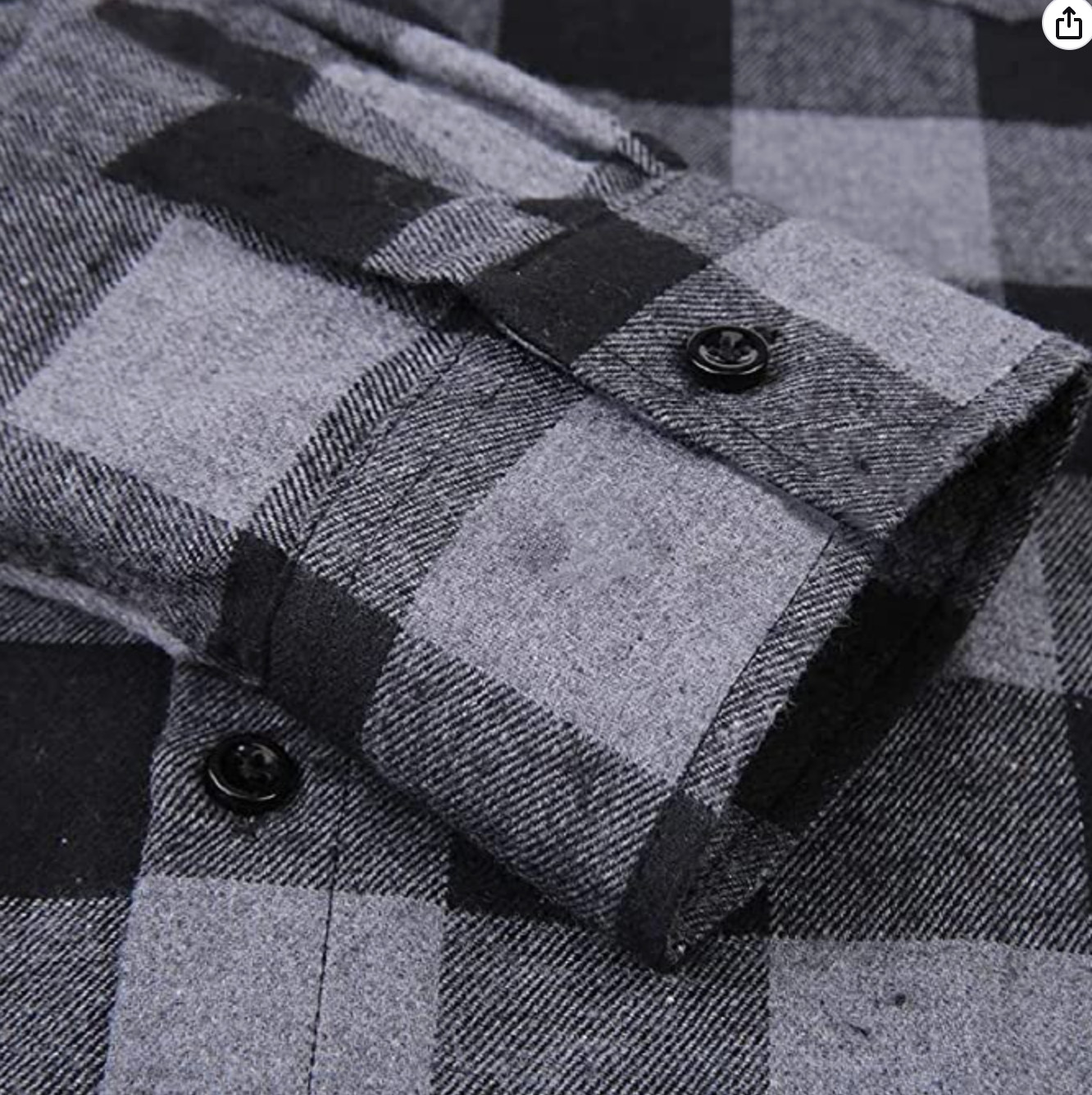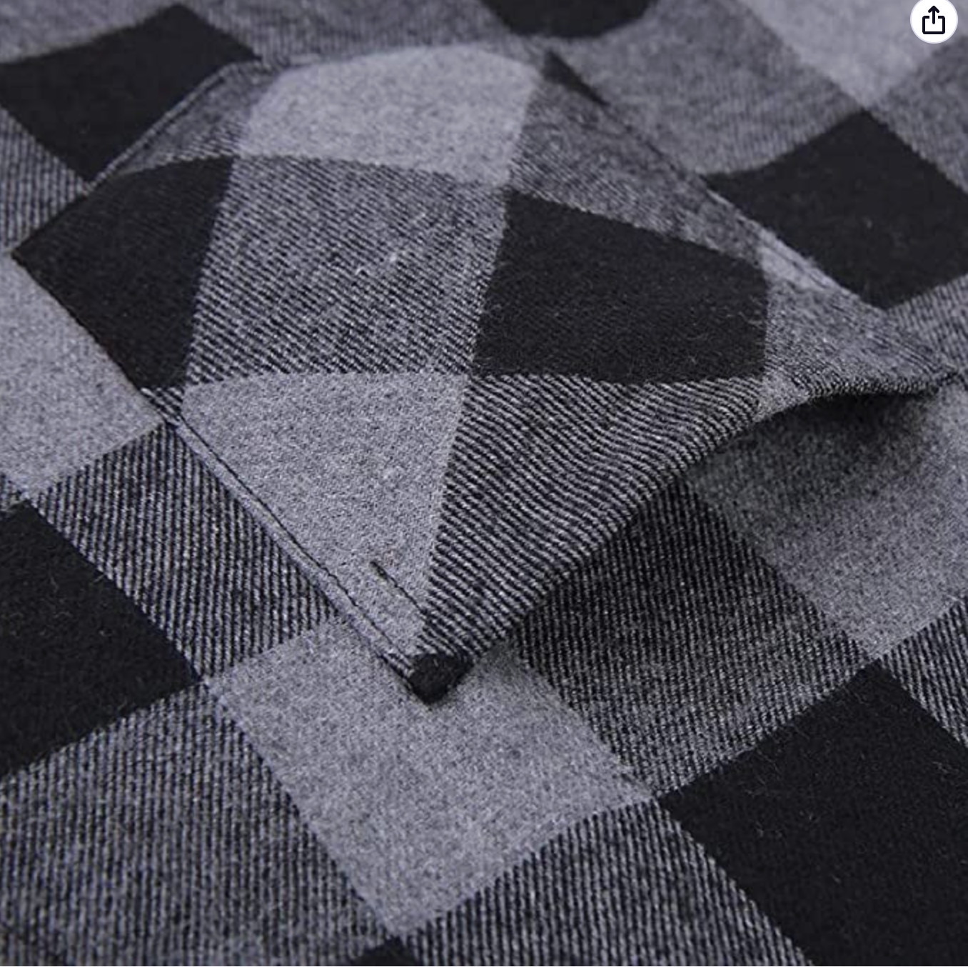New - Mens Grey/Black Buffalo Plaid Flannel Shirt Button Chest Pocket - Medium