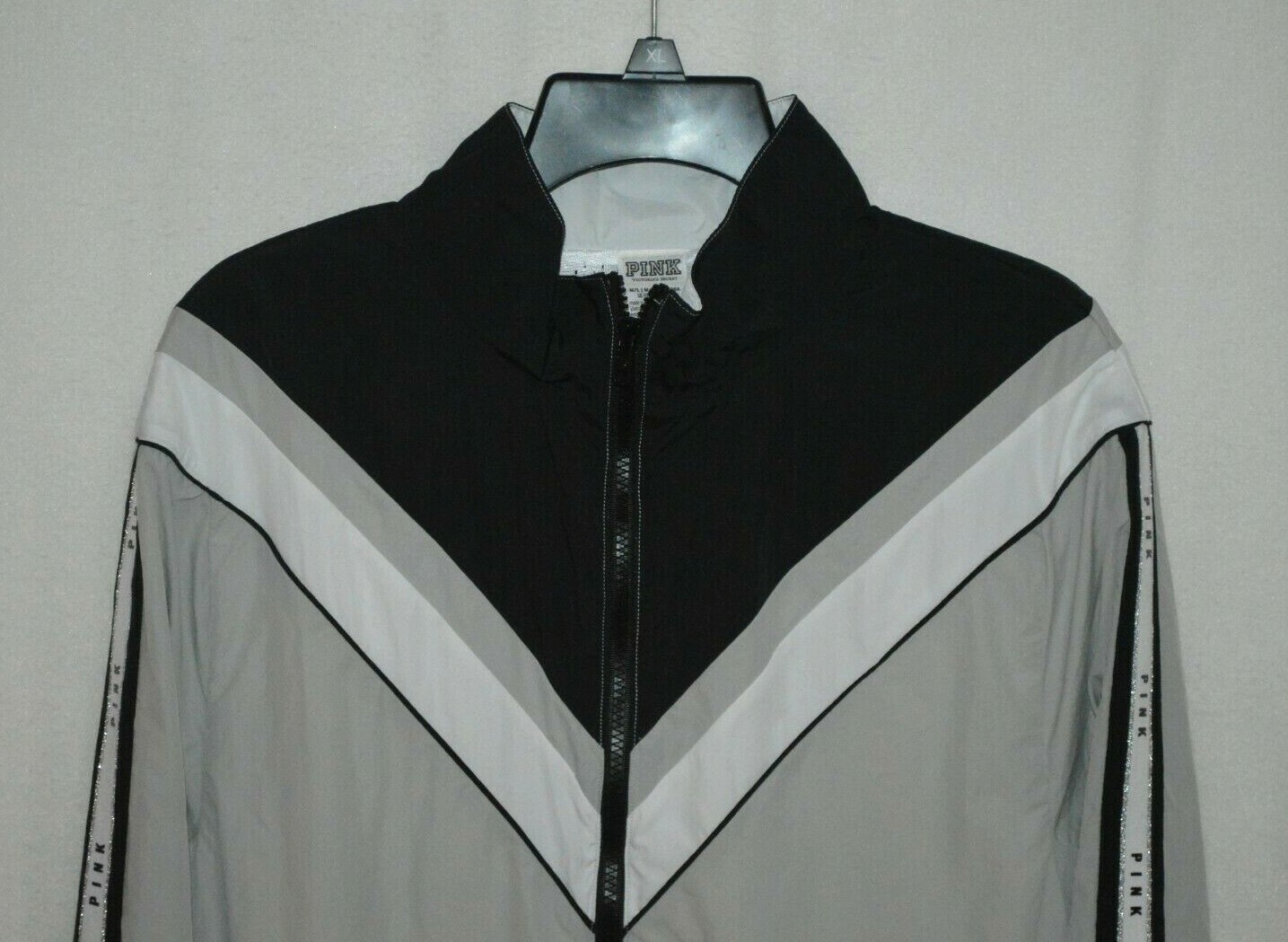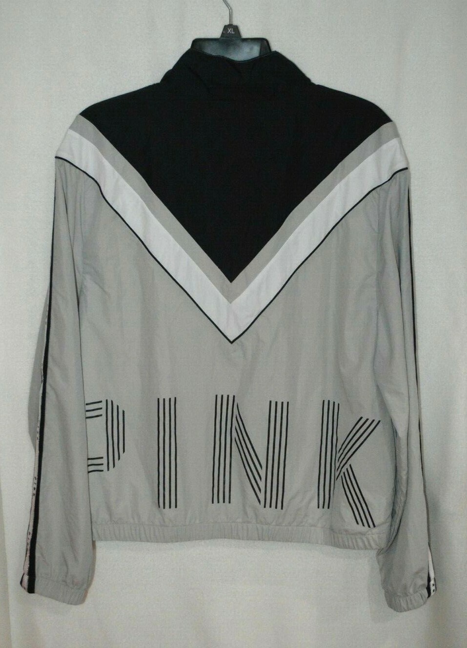 Pink Victorias Secret Grey/Multi Logo Sleeve F Zip Windbreaker Jacket-Size M/L
