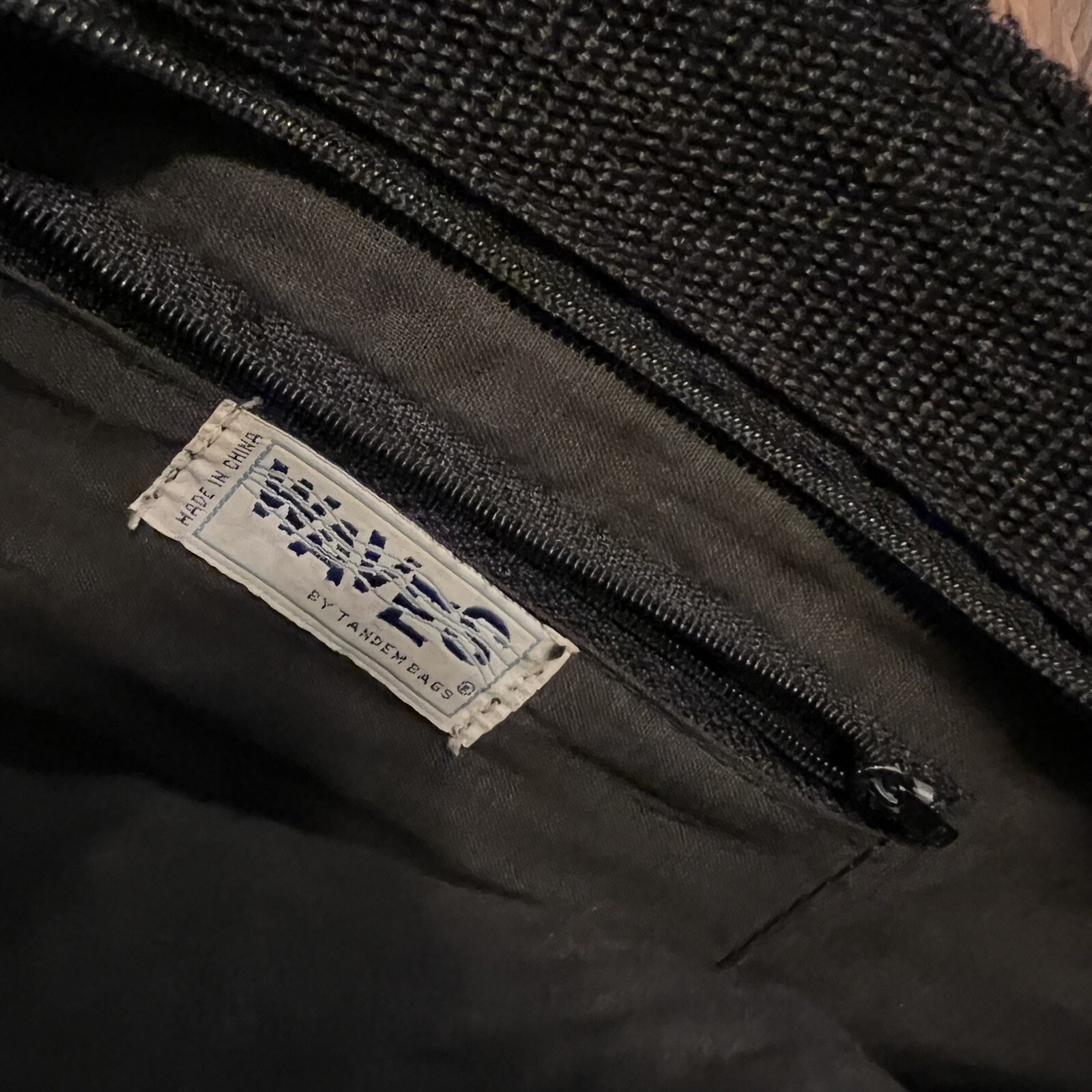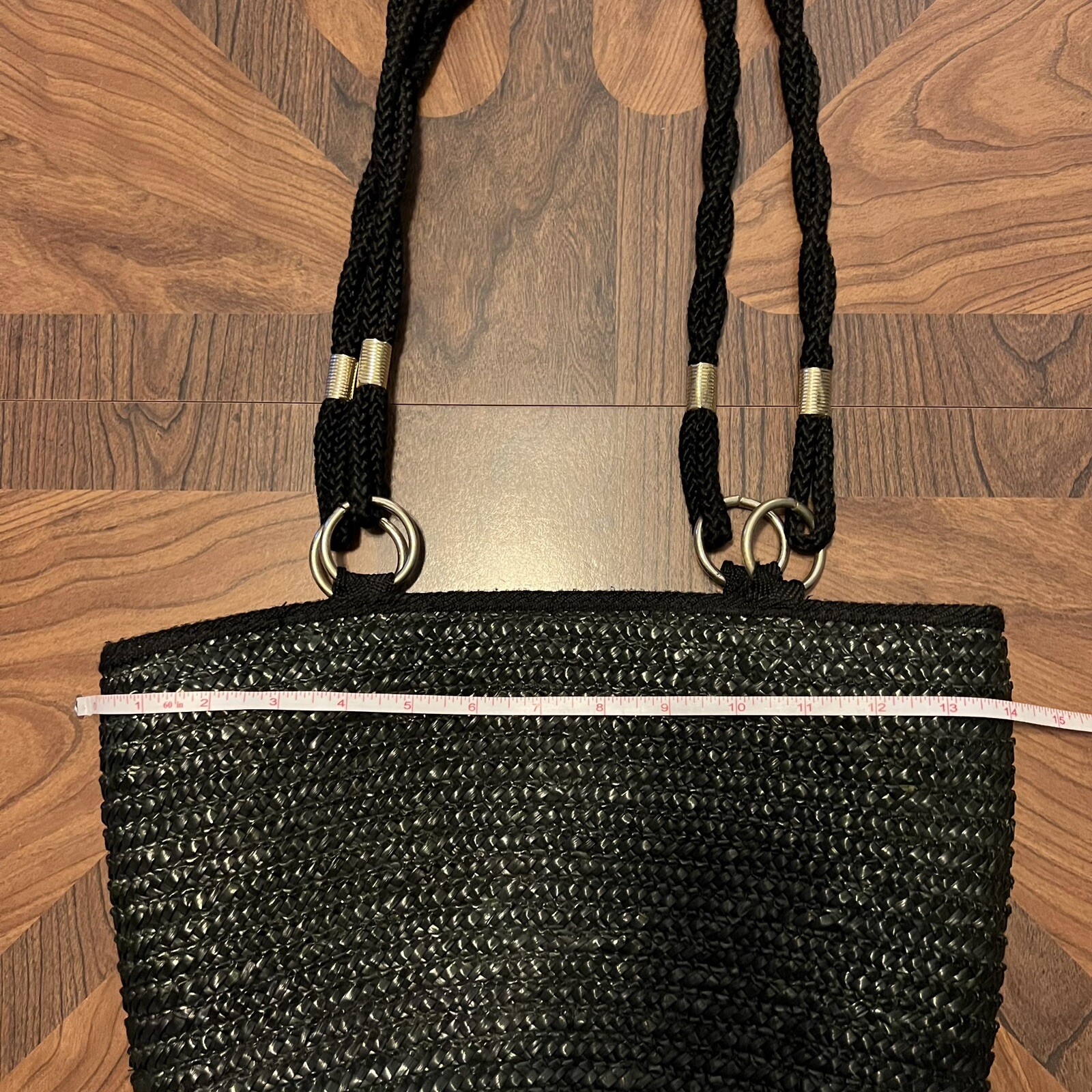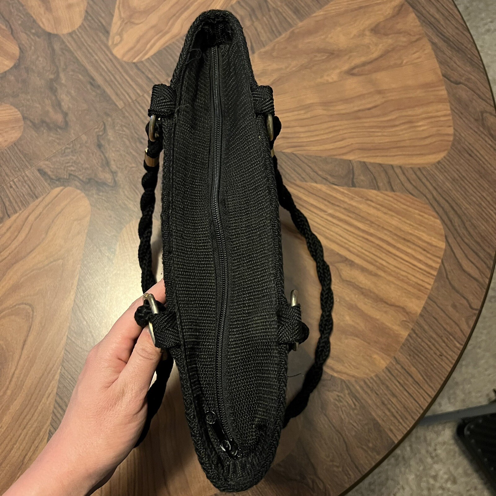 как выглядит Vintage 1990s Jute Black Rope Handles Purse Waves By Tandem Bags Zip Pocket фото
