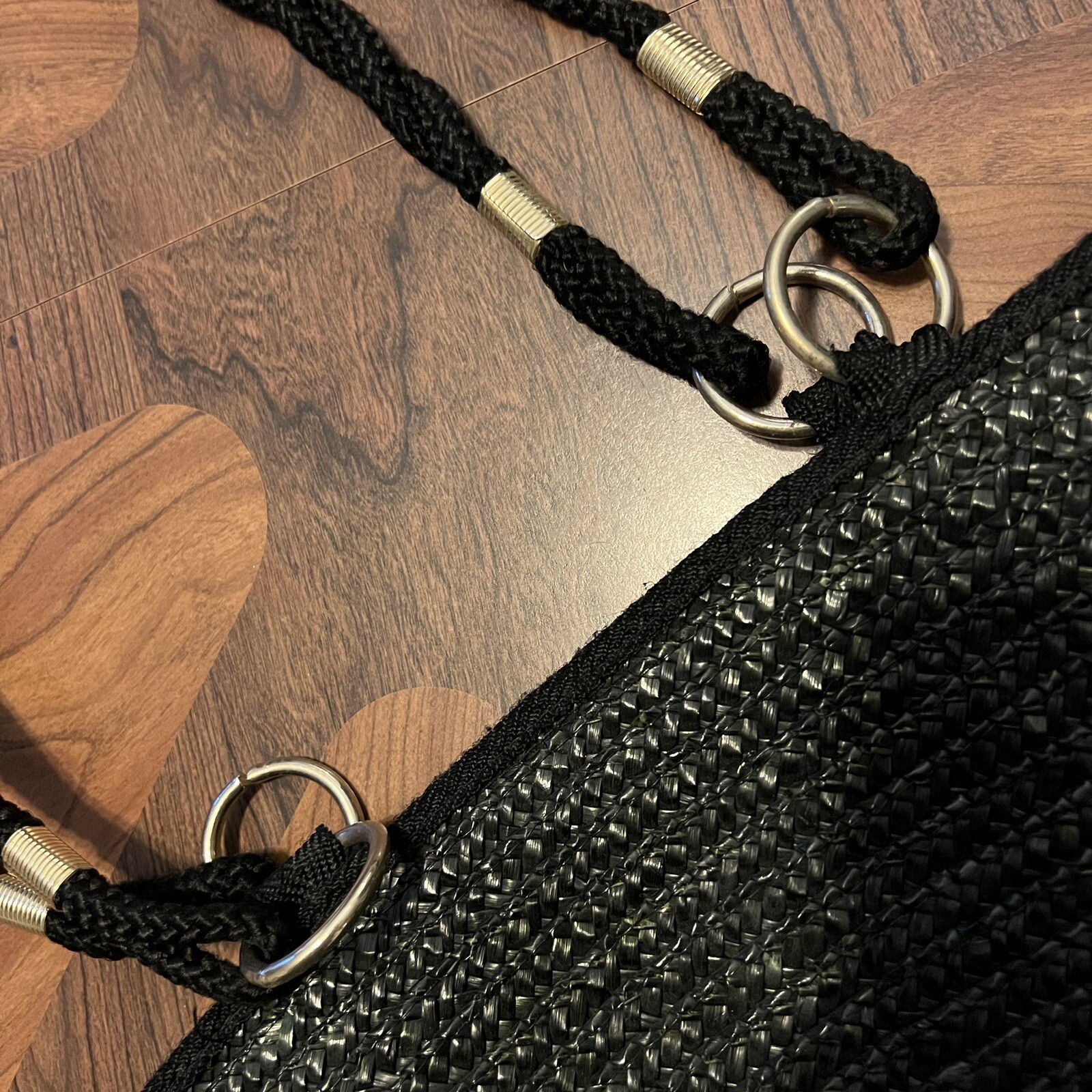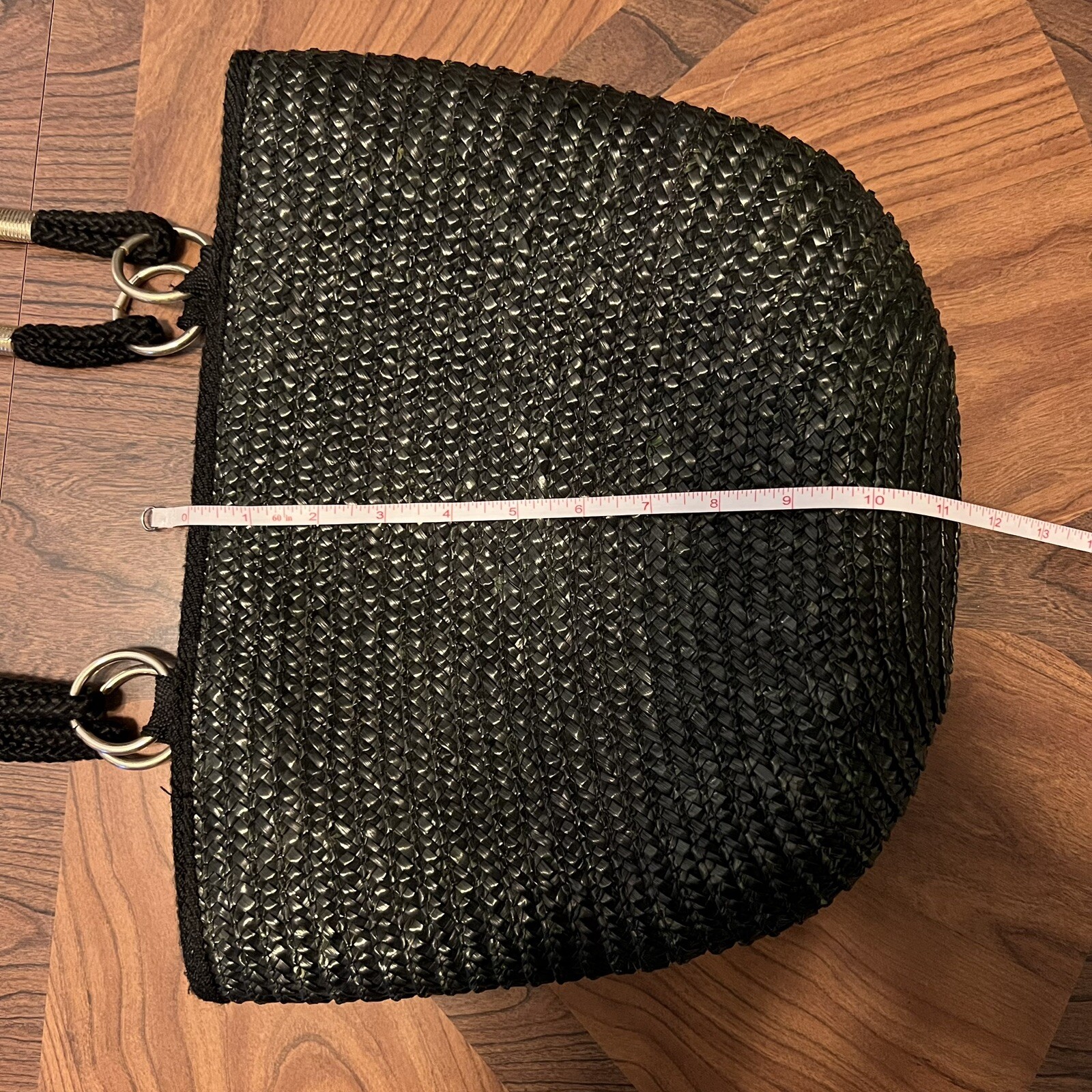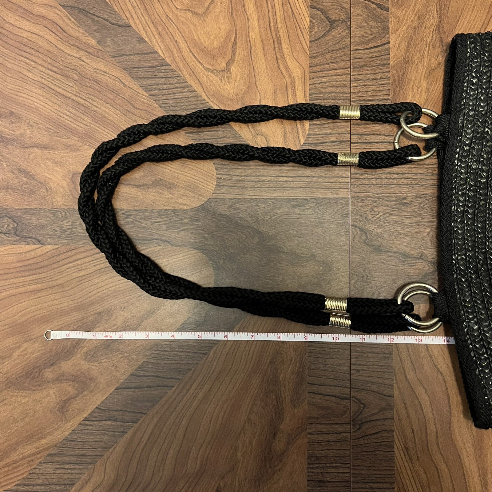 Vintage 1990s Jute Black Rope Handles Purse Waves By Tandem Bags Zip Pocket