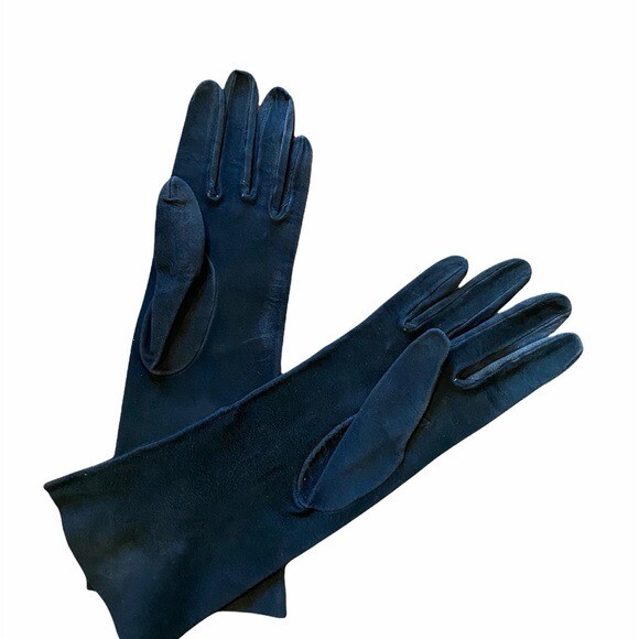 как выглядит Vintage Black Suede Embroidered Gloves, size 6 фото