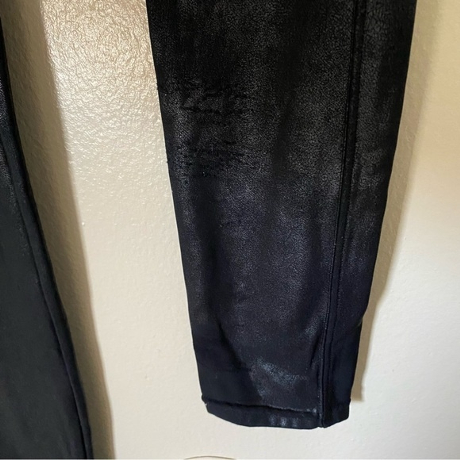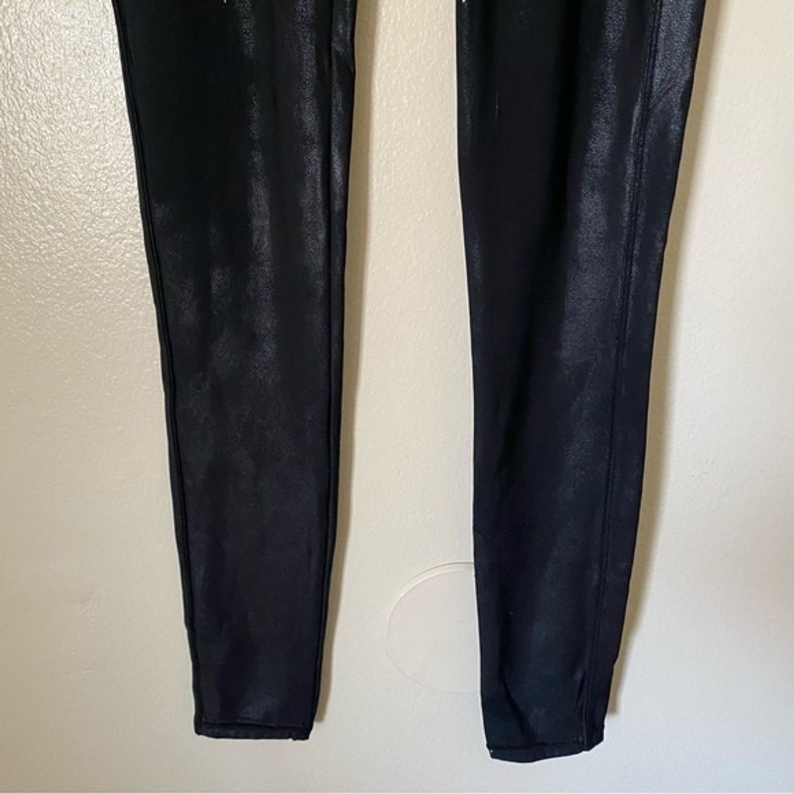 как выглядит Spanx Womens Size Medium Coated Black Moto High Rise Leggings фото