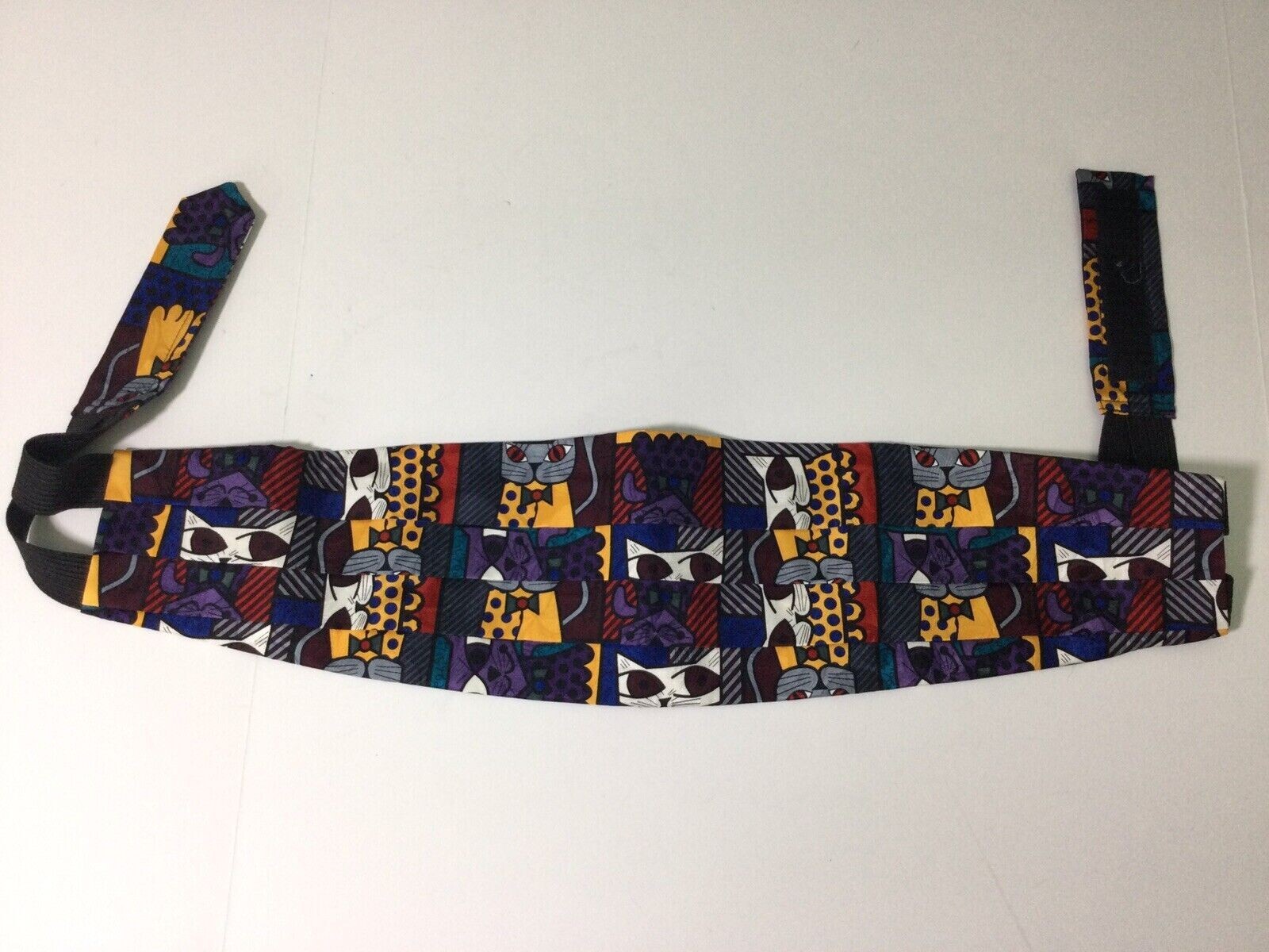 как выглядит Mr. Night Tiem Romero Britto Abstract Cats Mens Cummerbund 100 Silk фото