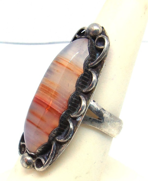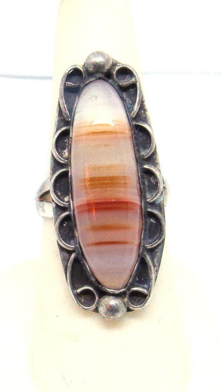как выглядит Large Vintage Sterling Silver Banded Agate Ring, Size 7 фото