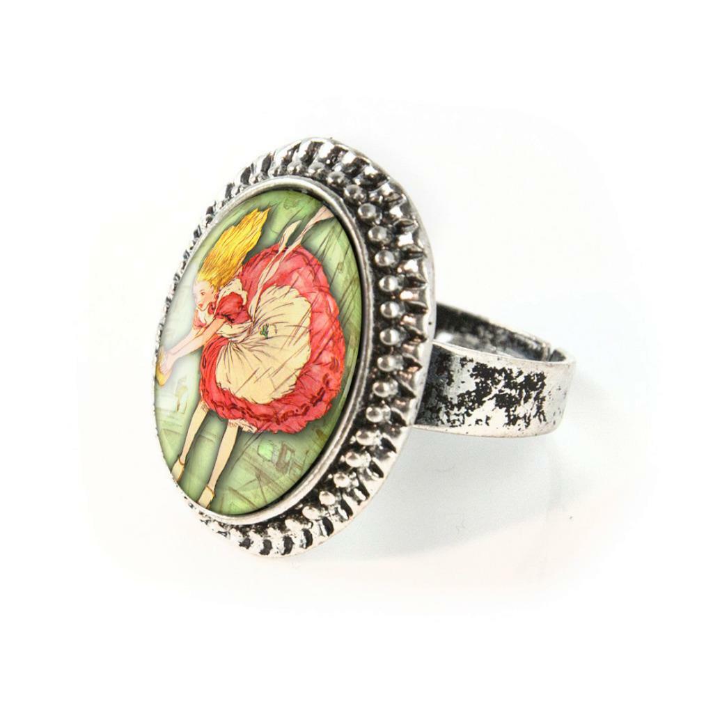 Alice in Wonderland Psychedelic Fantasy Handmade Glass Ring