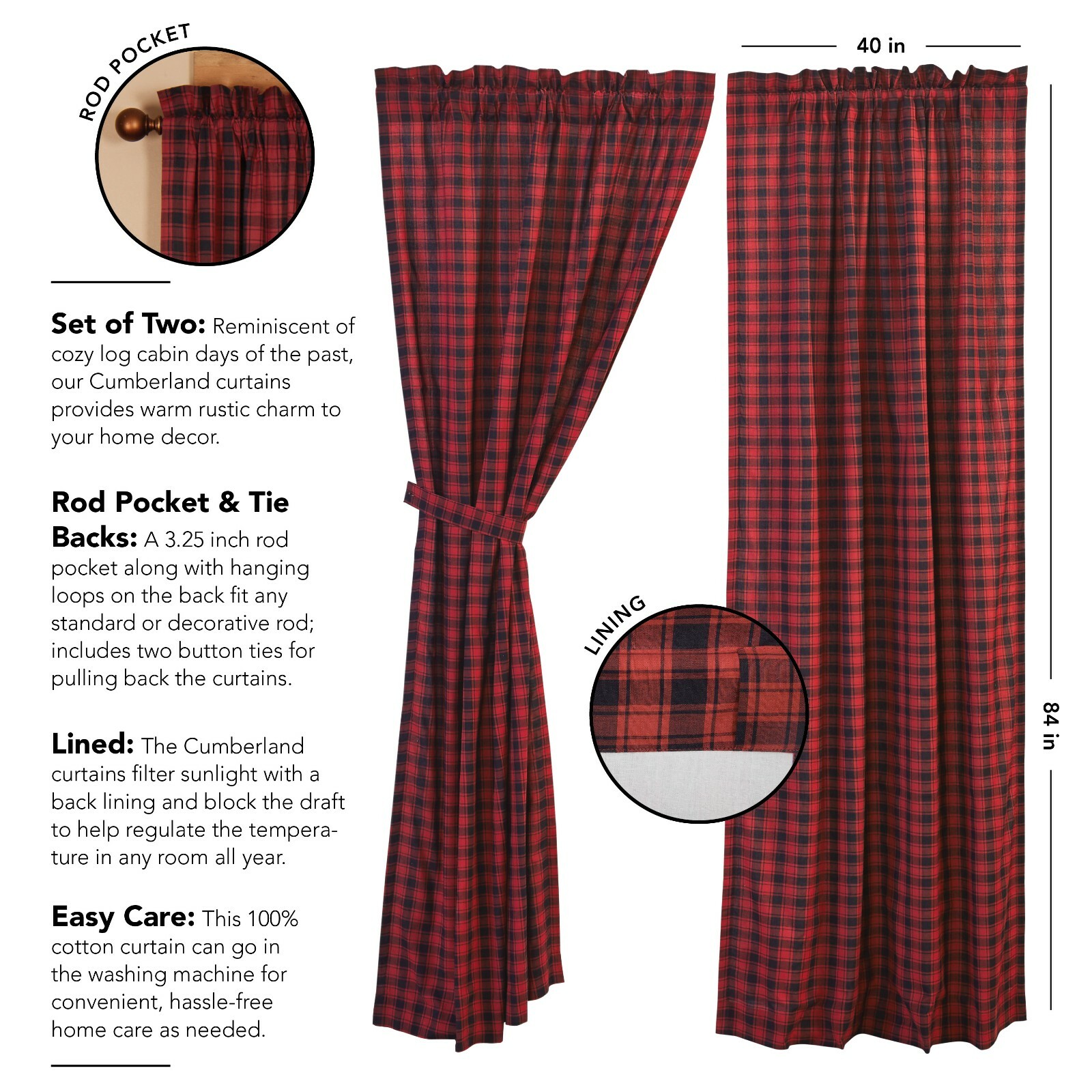 Cumberland PANEL SET 84 Country CURTAINS Red and Black Plaid Cabin Lodge Rustic