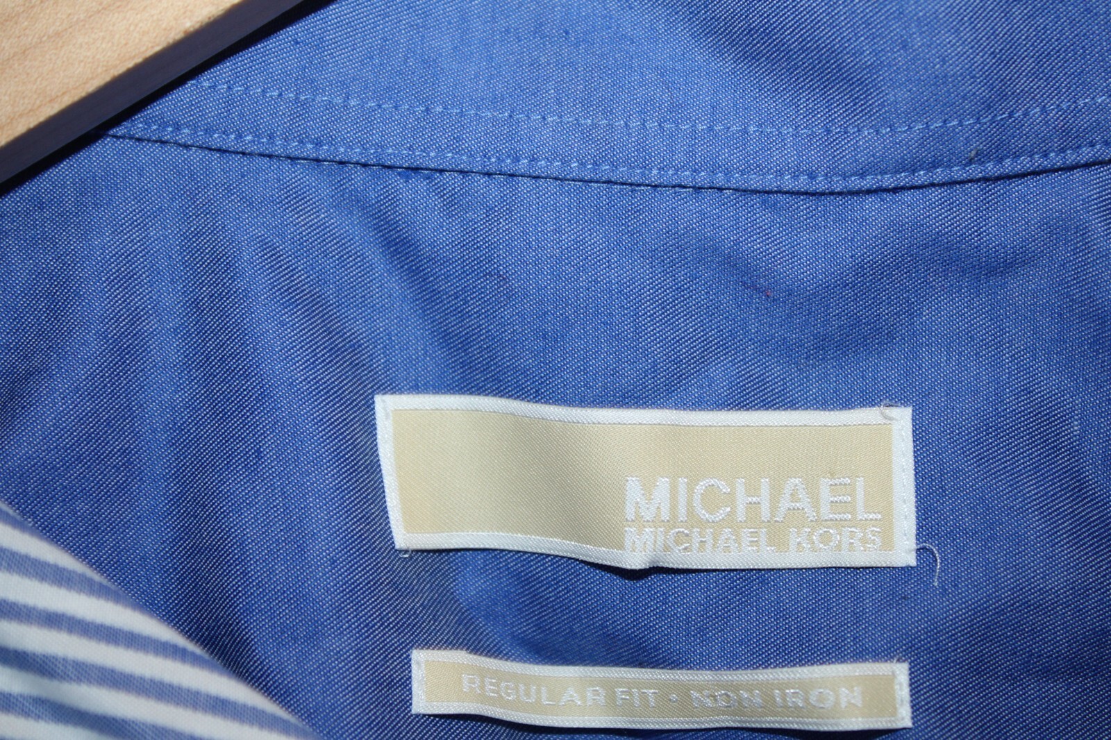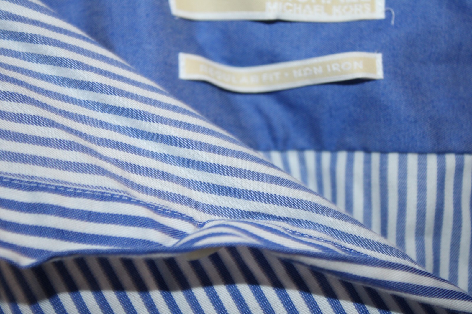 Michael Kors Men's Dress Shirt 17 34/35 Regular Fit Non-Iron Blue Stripes