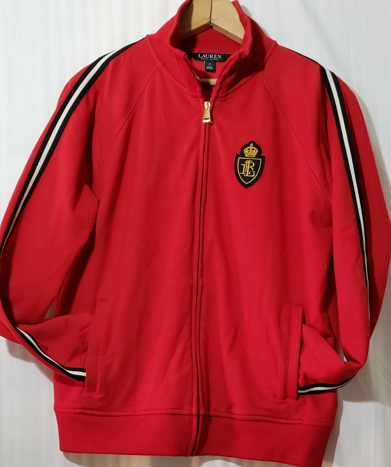 VINTAGE RED LAUREN RALPH LAUREN CROWN CREST Pinstripe Zip Tracksuit JACKET Sz M