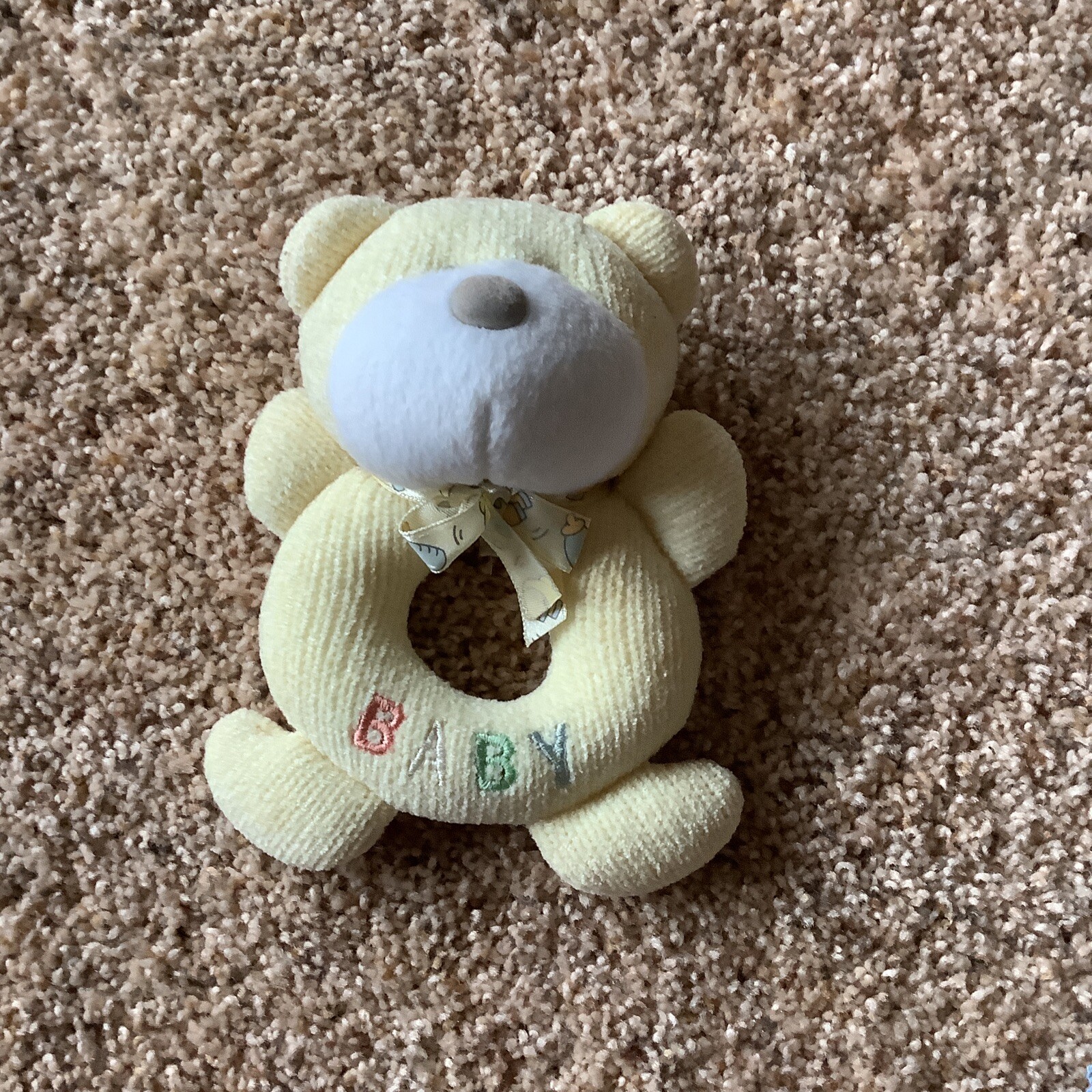 как выглядит Lot of 3 NEW Teddy Bear Baby Items Bib Rattle Plush фото
