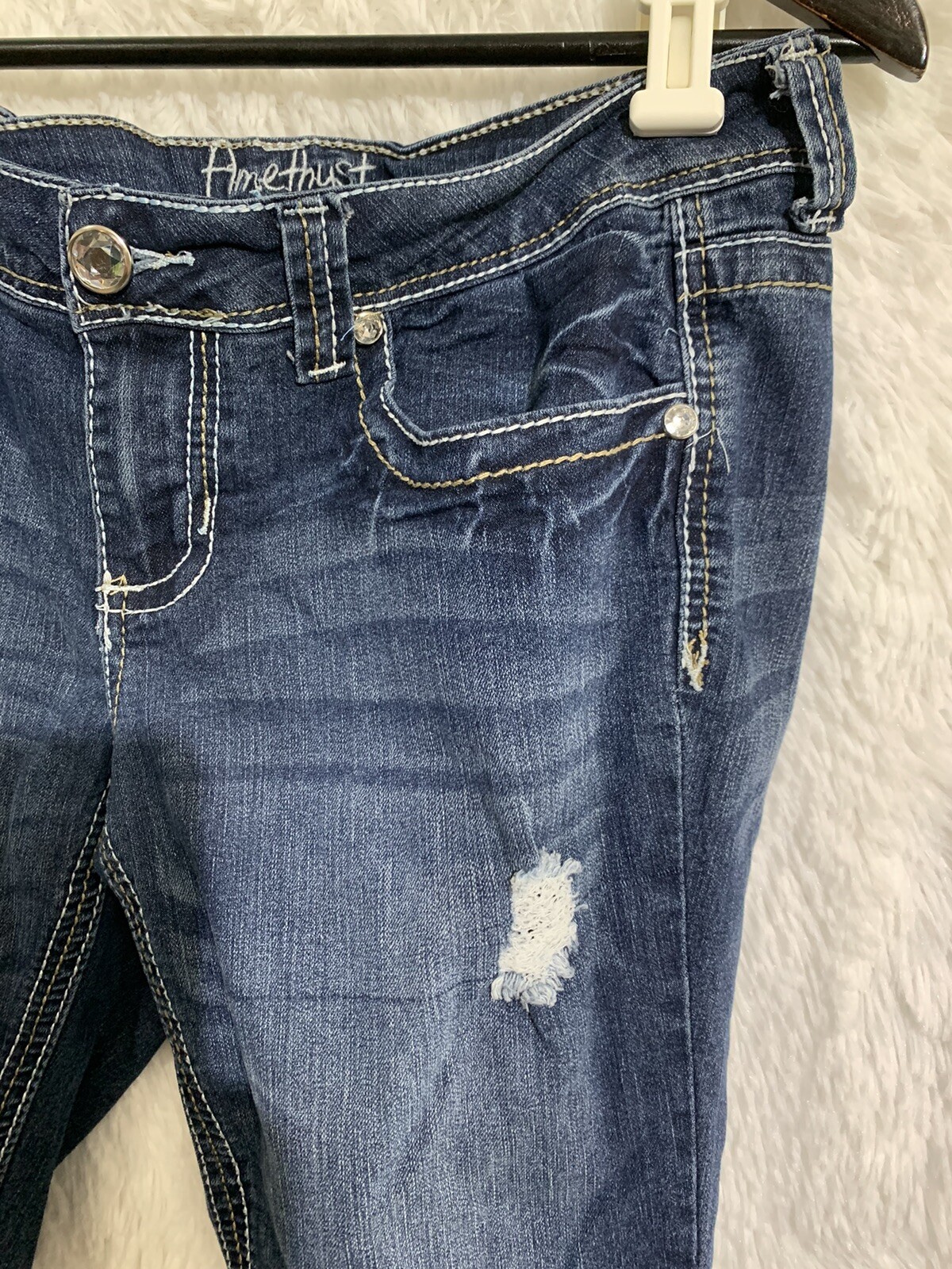 как выглядит EUC Amethyst Women s Juniors Sz11 Blue Medium Wash Denim Low Rise Boot Cut Jeans фото
