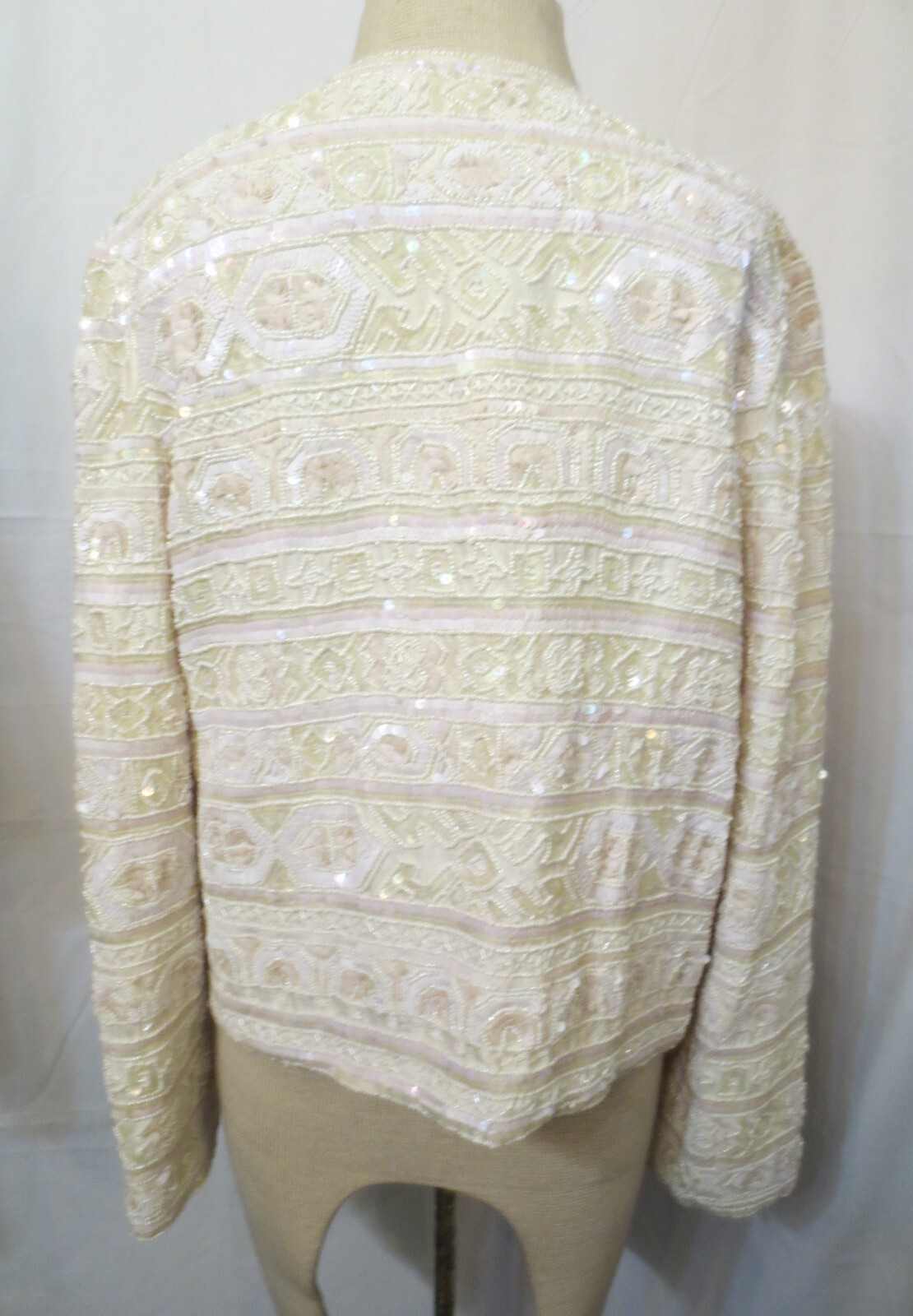 как выглядит Vtg Custom made Heavy Embellished sequins Beads Open Front Jacket Sz L фото