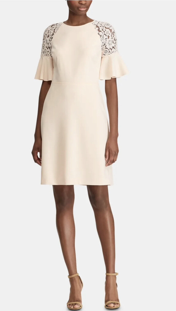 RALPH LAUREN Women Blush Pink Bell Ruffle Sleeve Evening Dress Size 8 AUTHENTIC