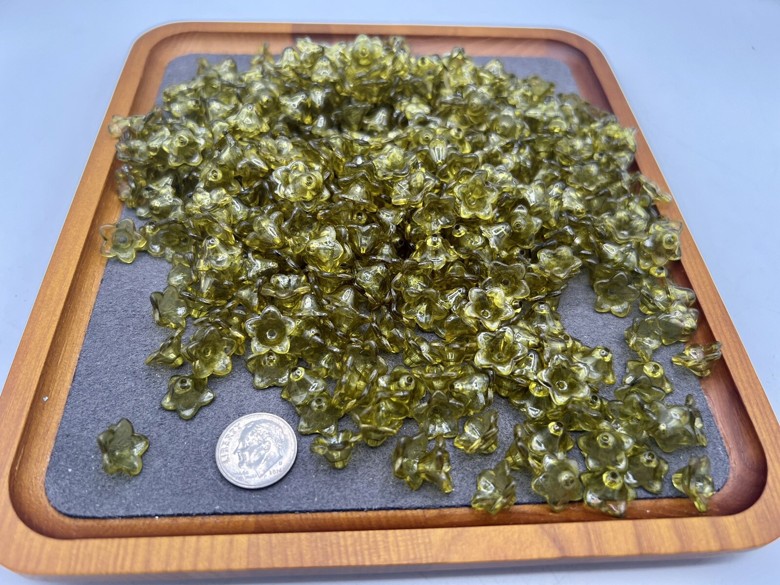 125 grams Flower Beads Bead Caps Acrylic Plastic Green-Brown 7 x 12mm bulk lot