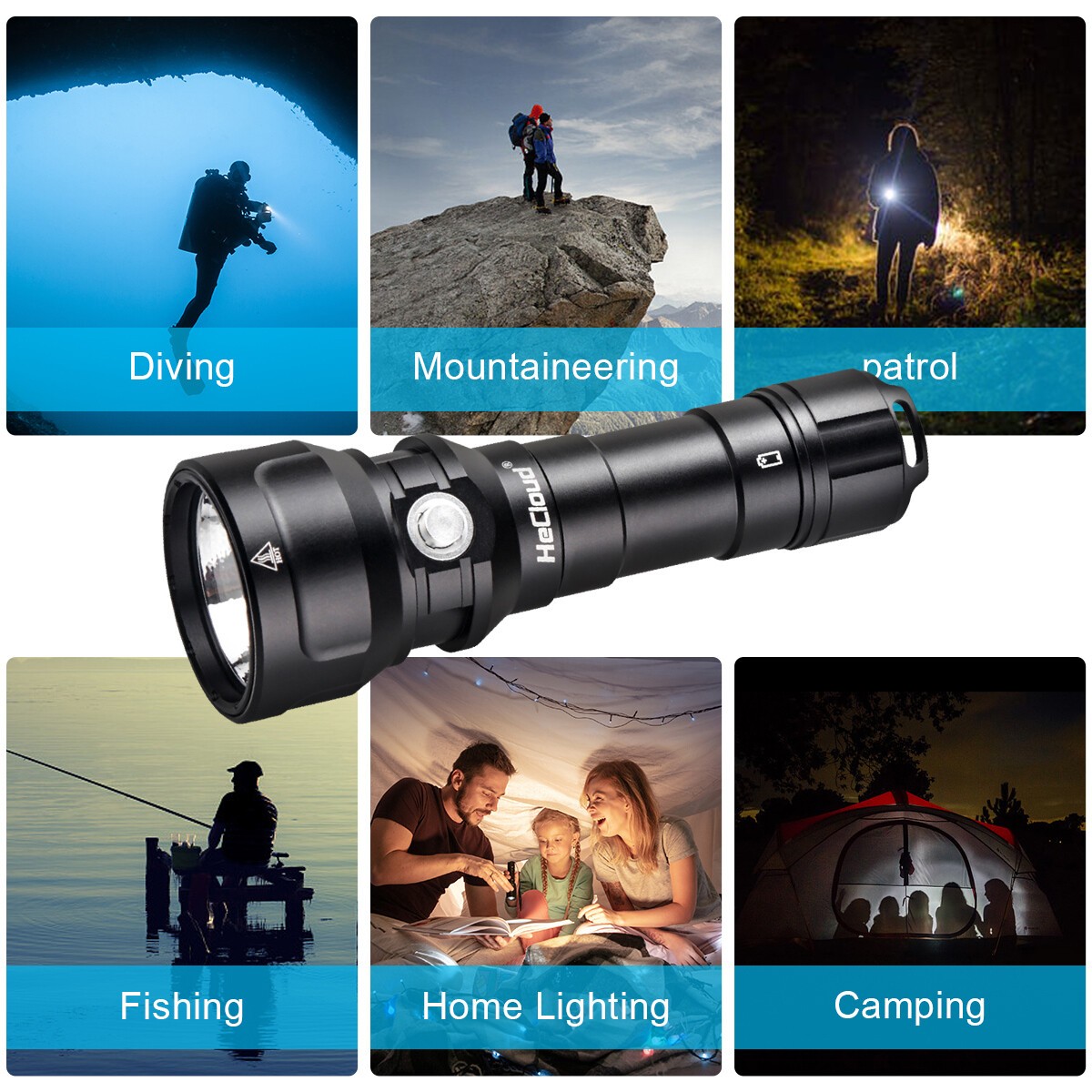 High Lumens LED Scuba Diving Flashlight Waterproof Underwater 394ft Torch Lamp