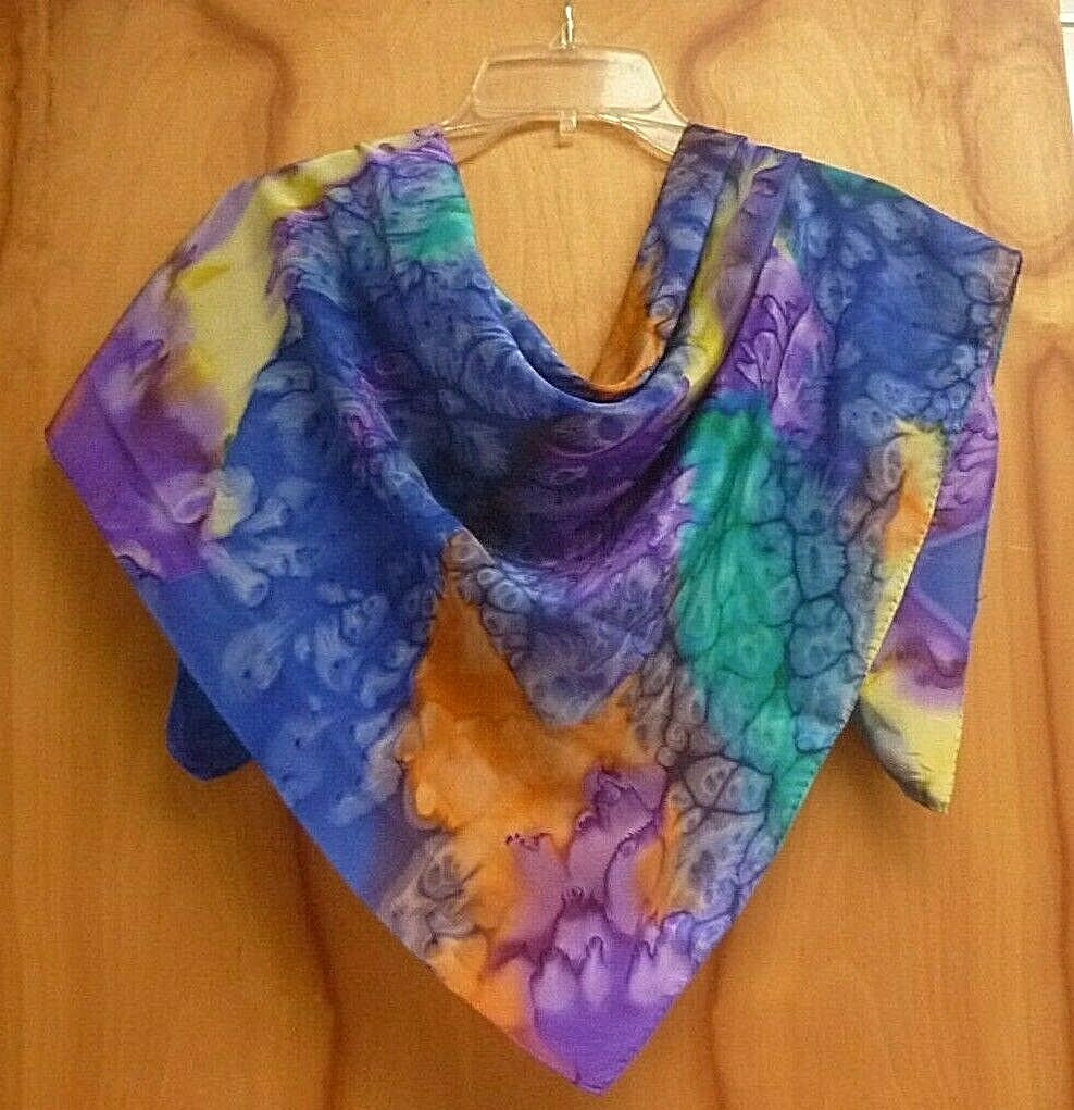 Hand Painted Multi Color Under Ocean Scenery Luxurious Silk Scarf Made in USA