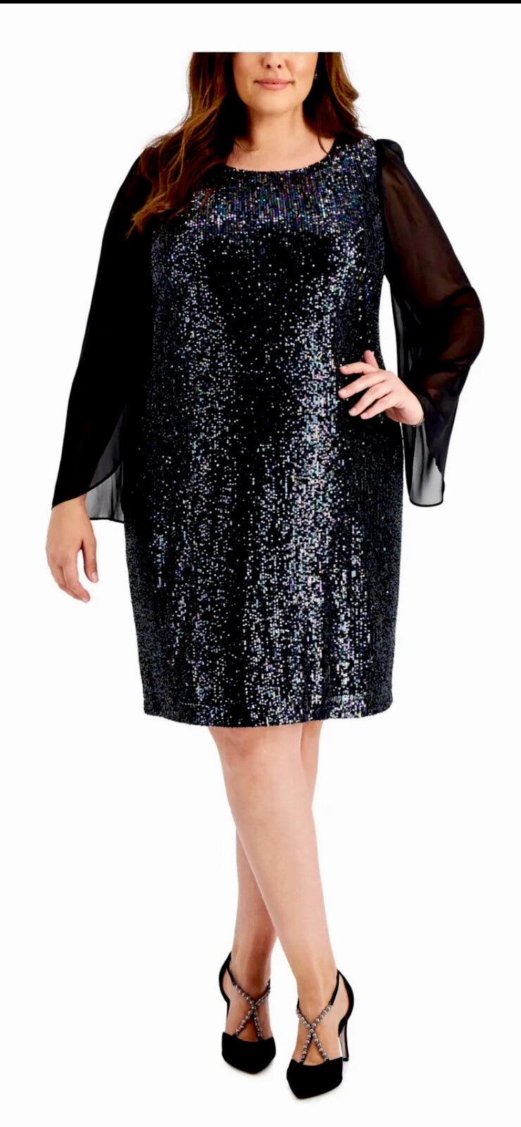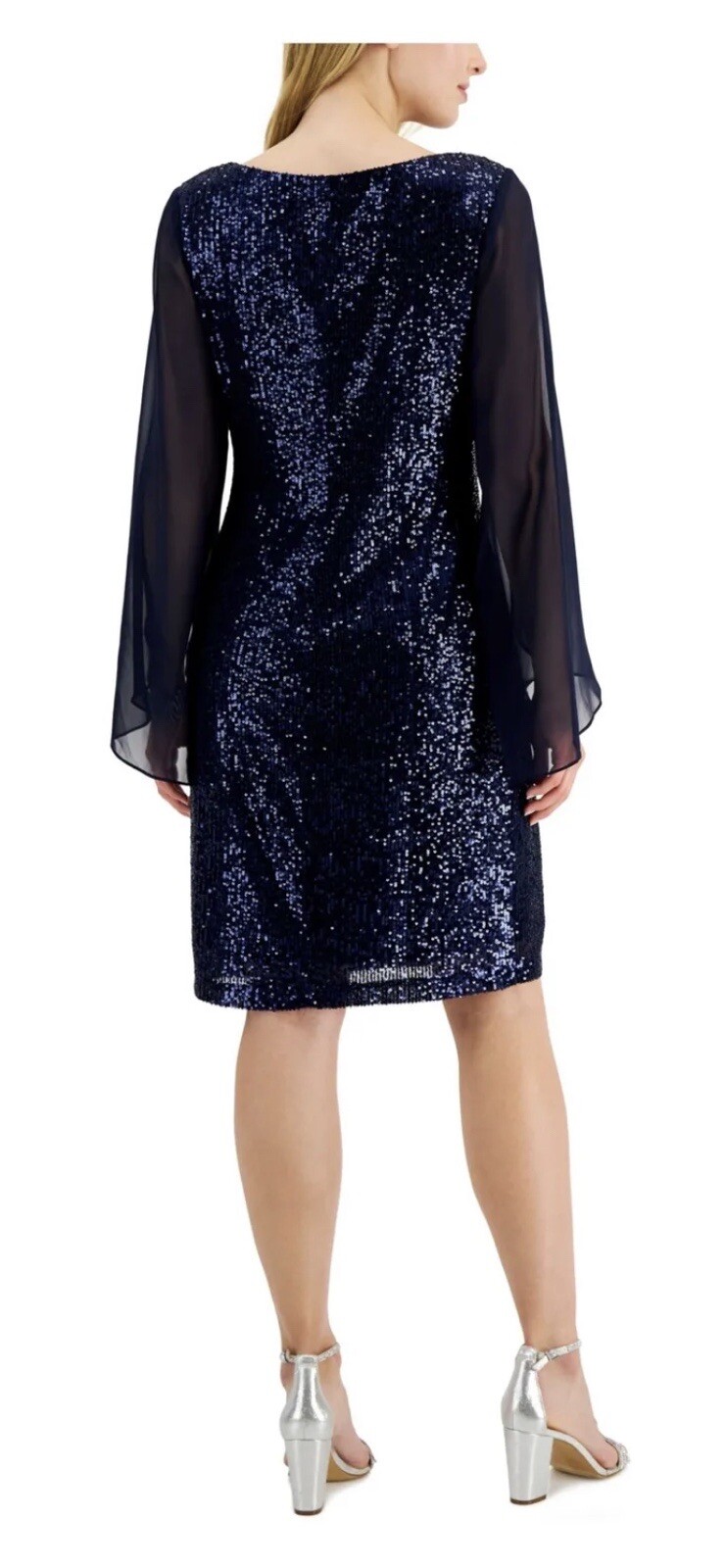 Women s Formal Dress Navy CONNECTED APPAREL Chiffon Long Sleeves Sheath Sequins