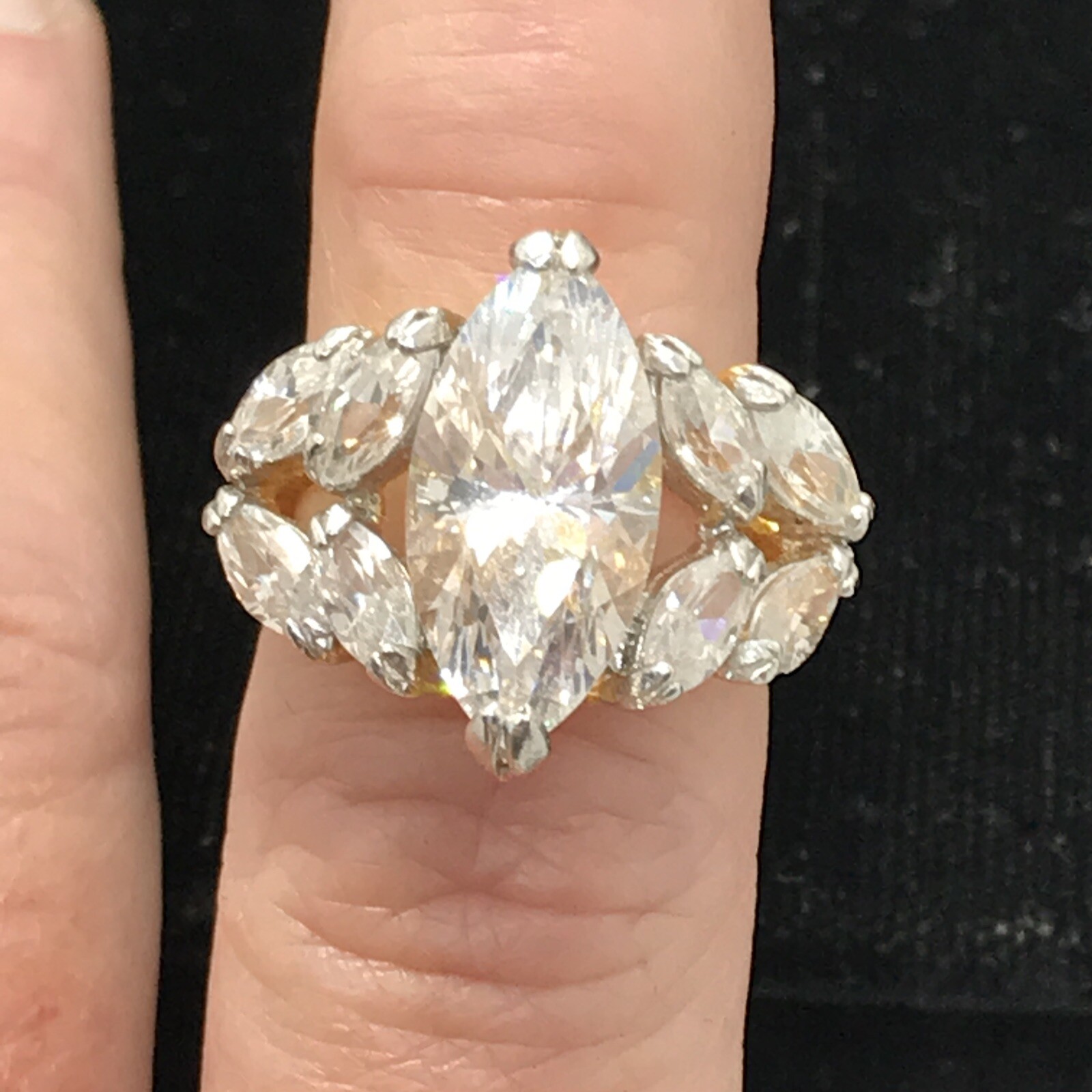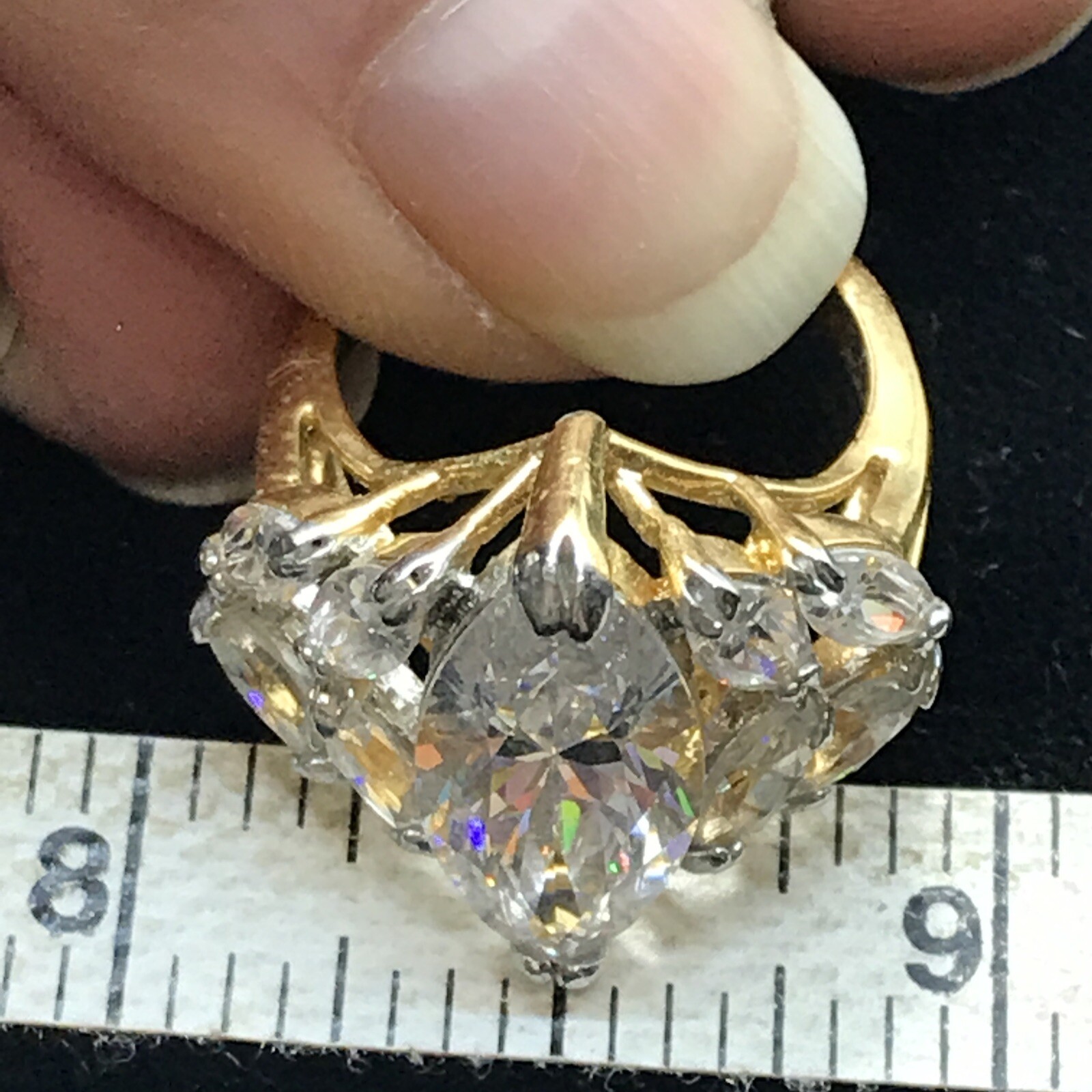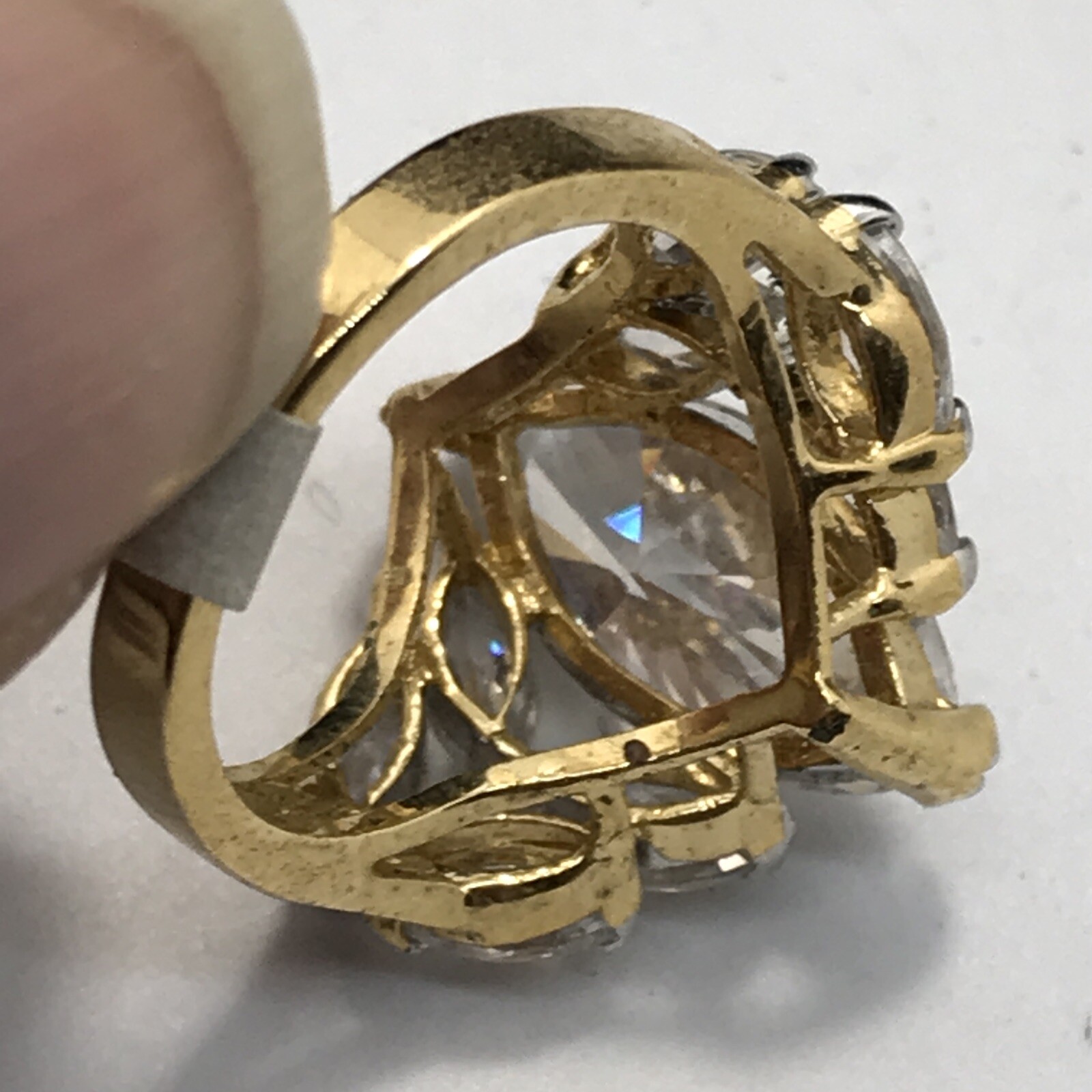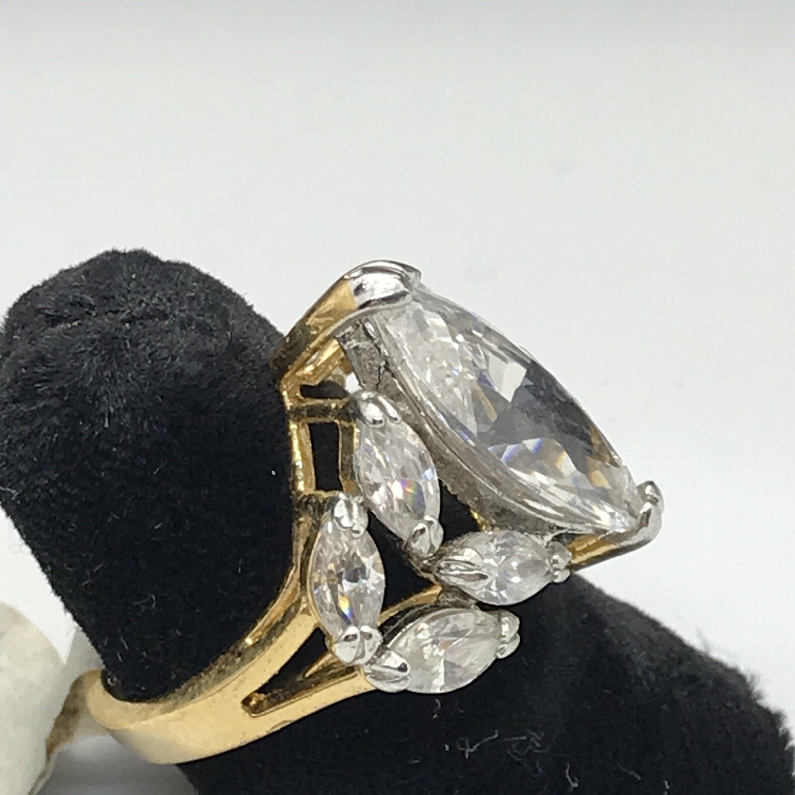 как выглядит Vintage Gold Vermeil Over Sterling Silver Crystal Stunning Design Ring sz 5 фото