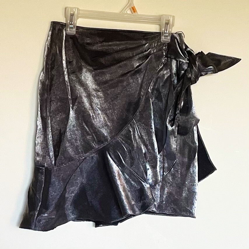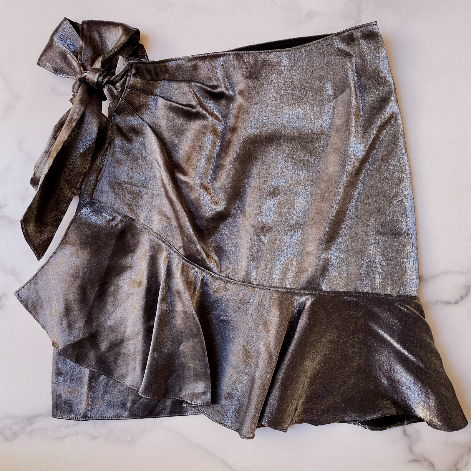 как выглядит Cinq a Sept Harley A-line ruffle wrap gunmetal mini skirt size 0 XXS NWT фото