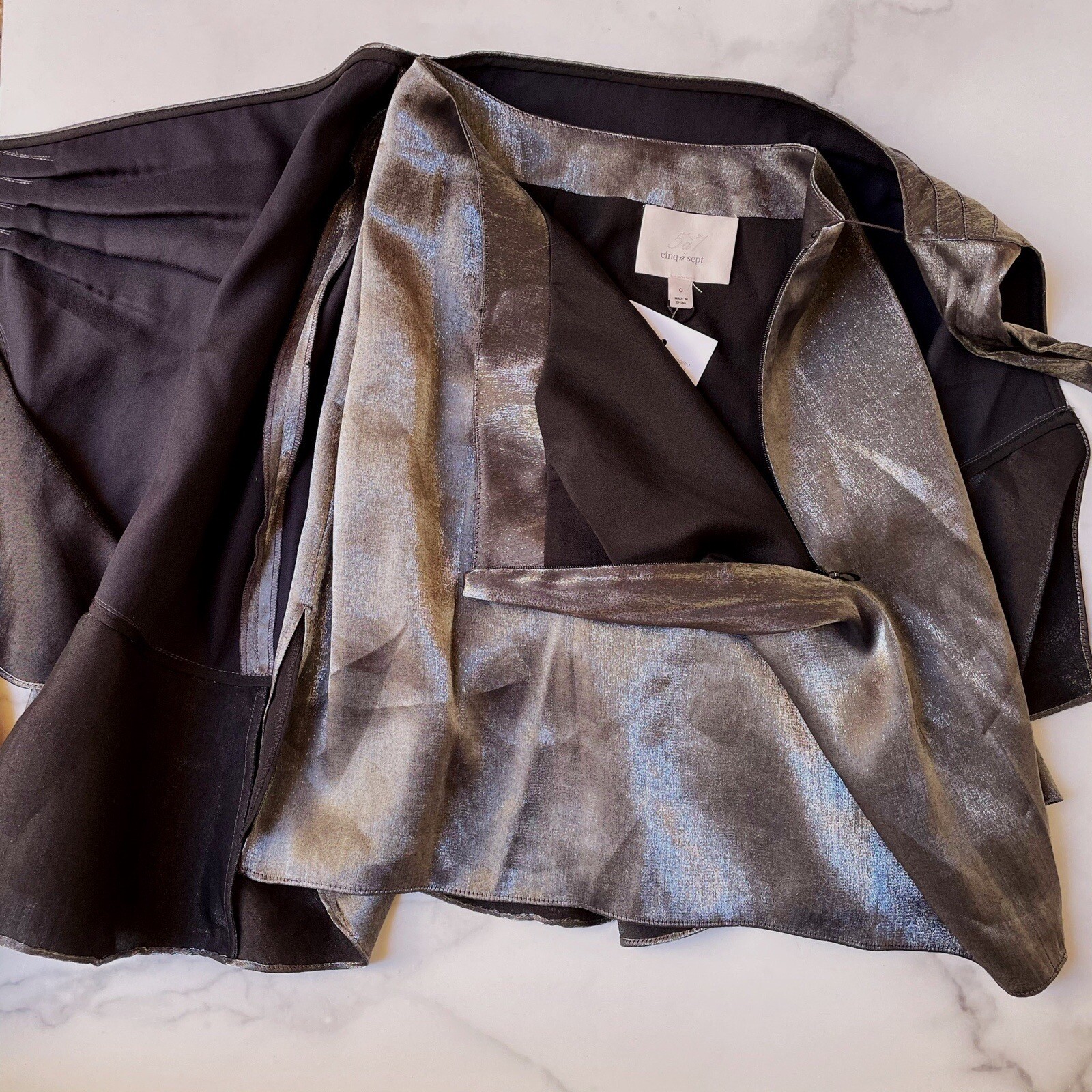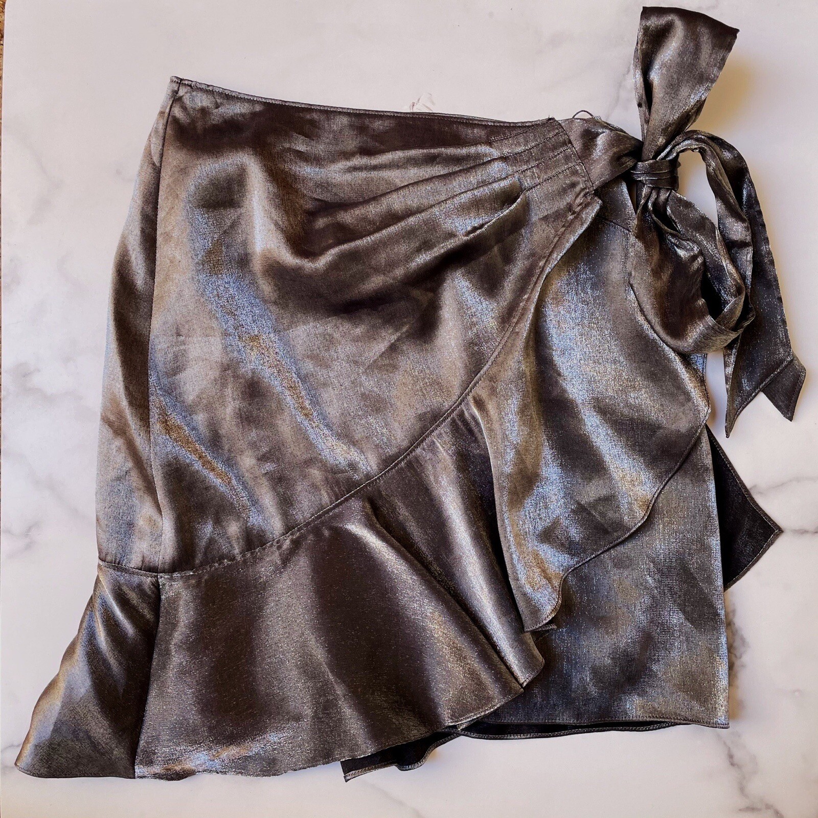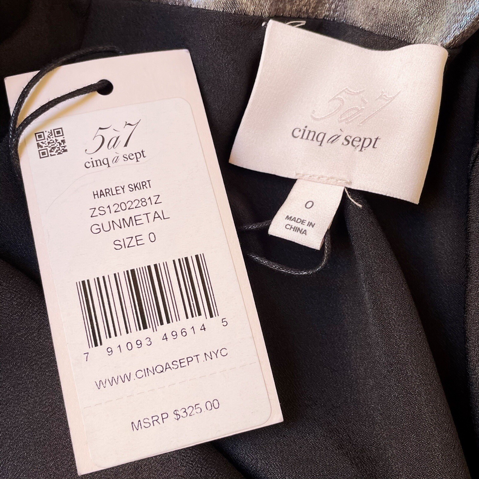 Cinq a Sept Harley A-line ruffle wrap gunmetal mini skirt size 0 XXS NWT