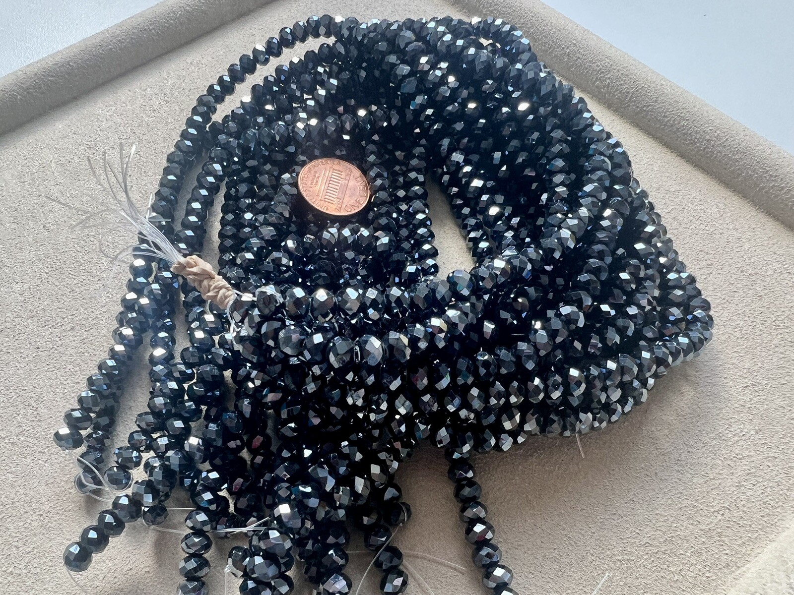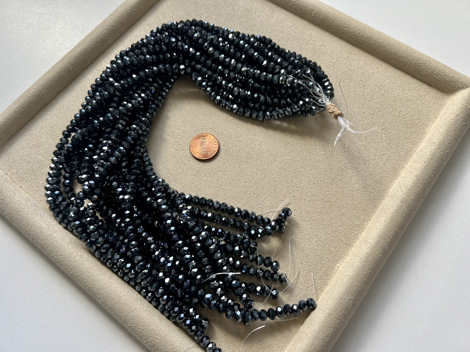 18 Strands Glass Crystal Faceted Beads 5 - 6mm rondelle gray silver metallic lot