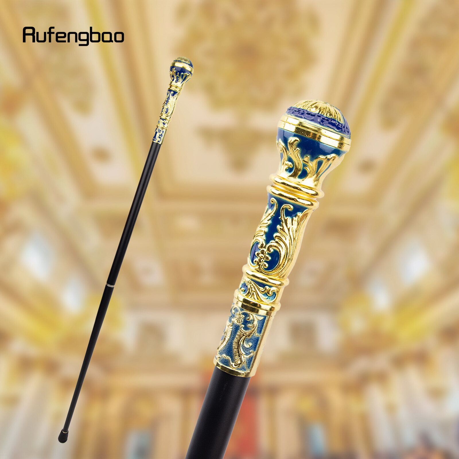 как выглядит Golden Blue Luxury Round Handle Fashion Walking Stick for Party Walking Cane фото