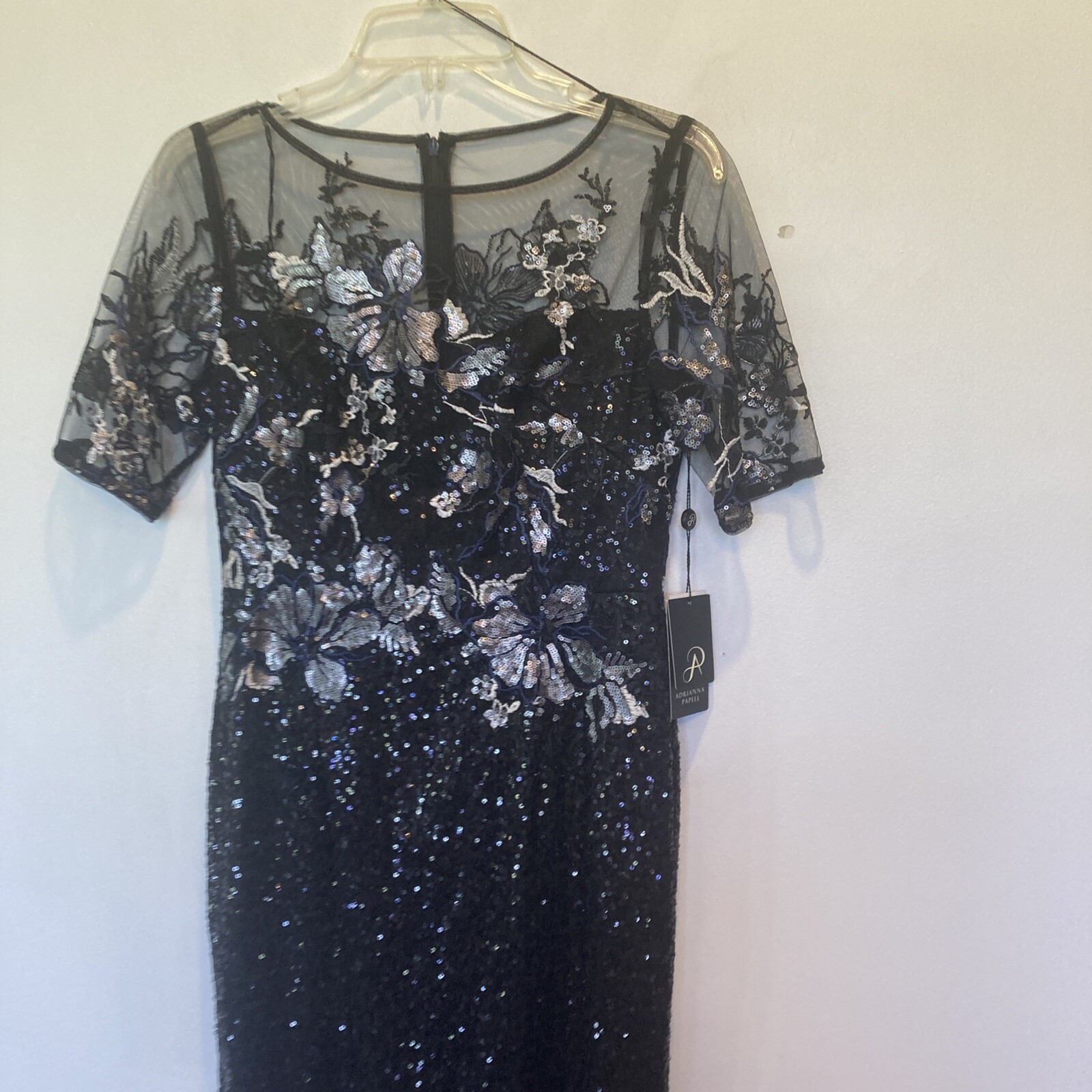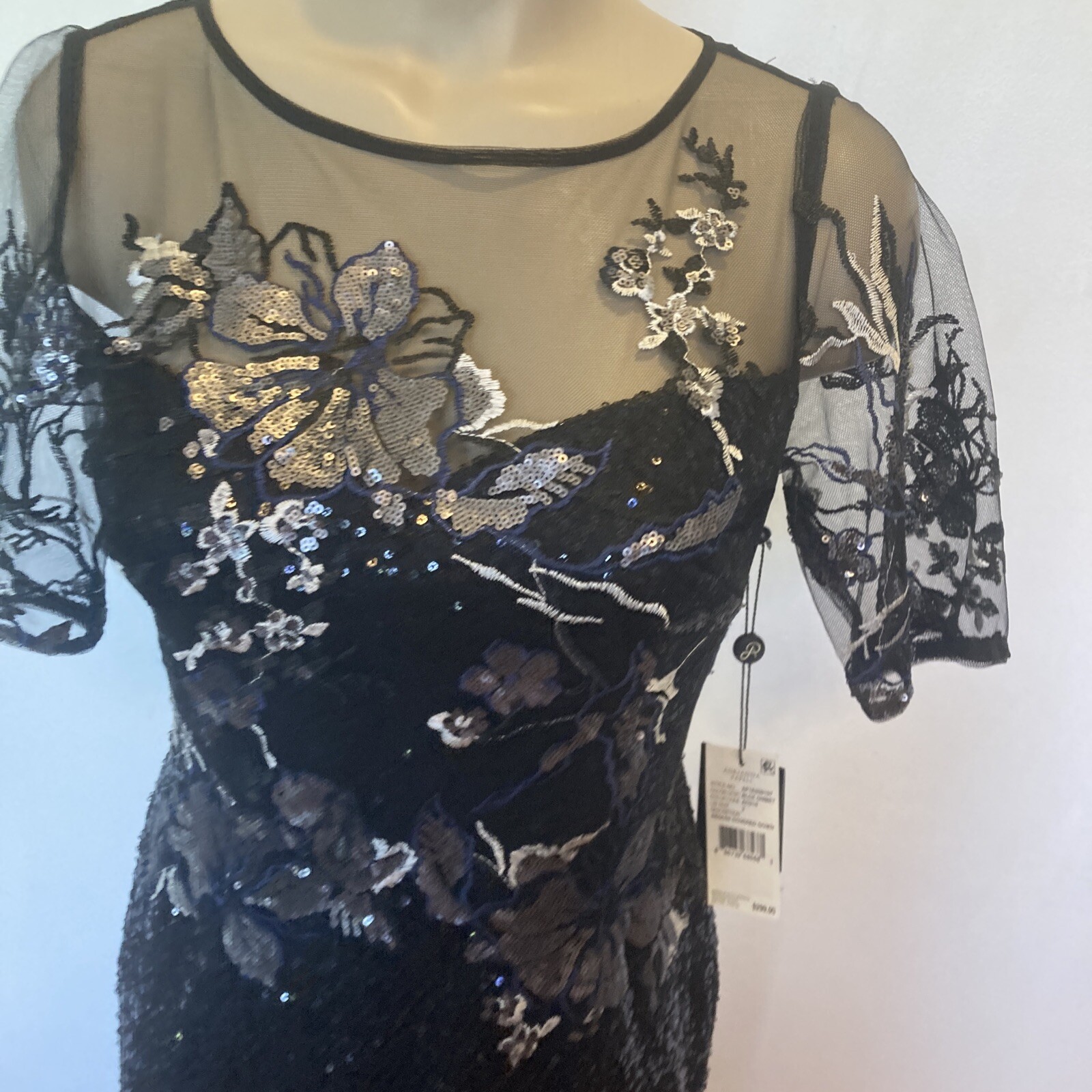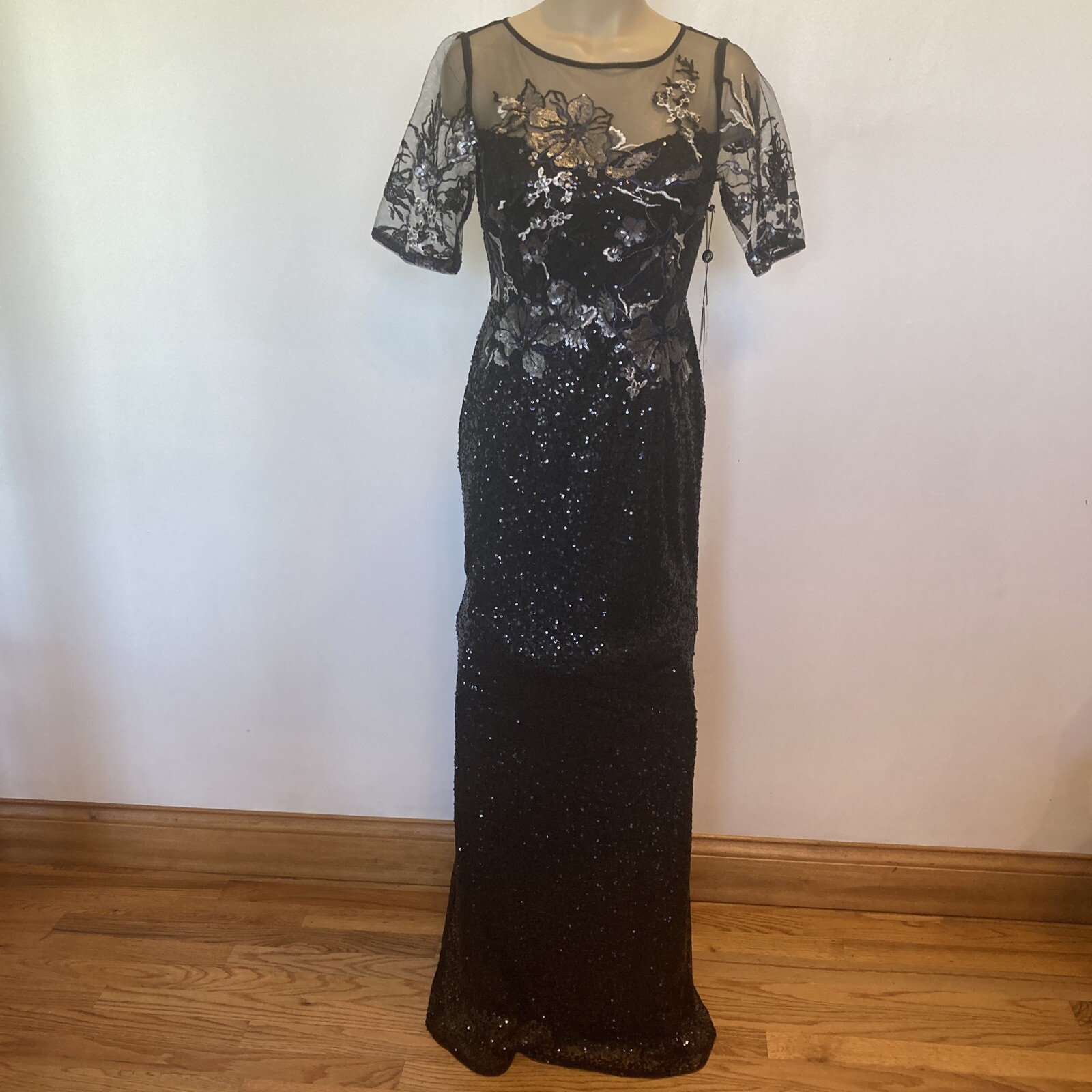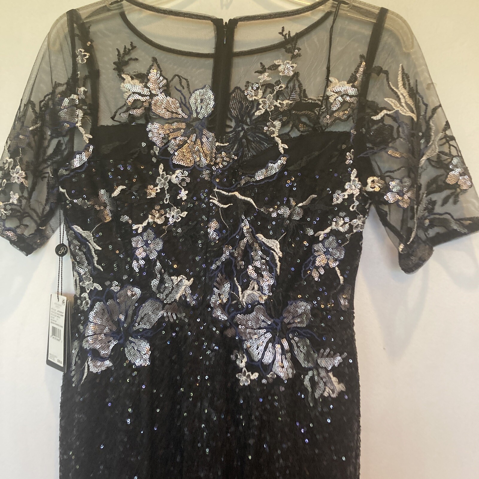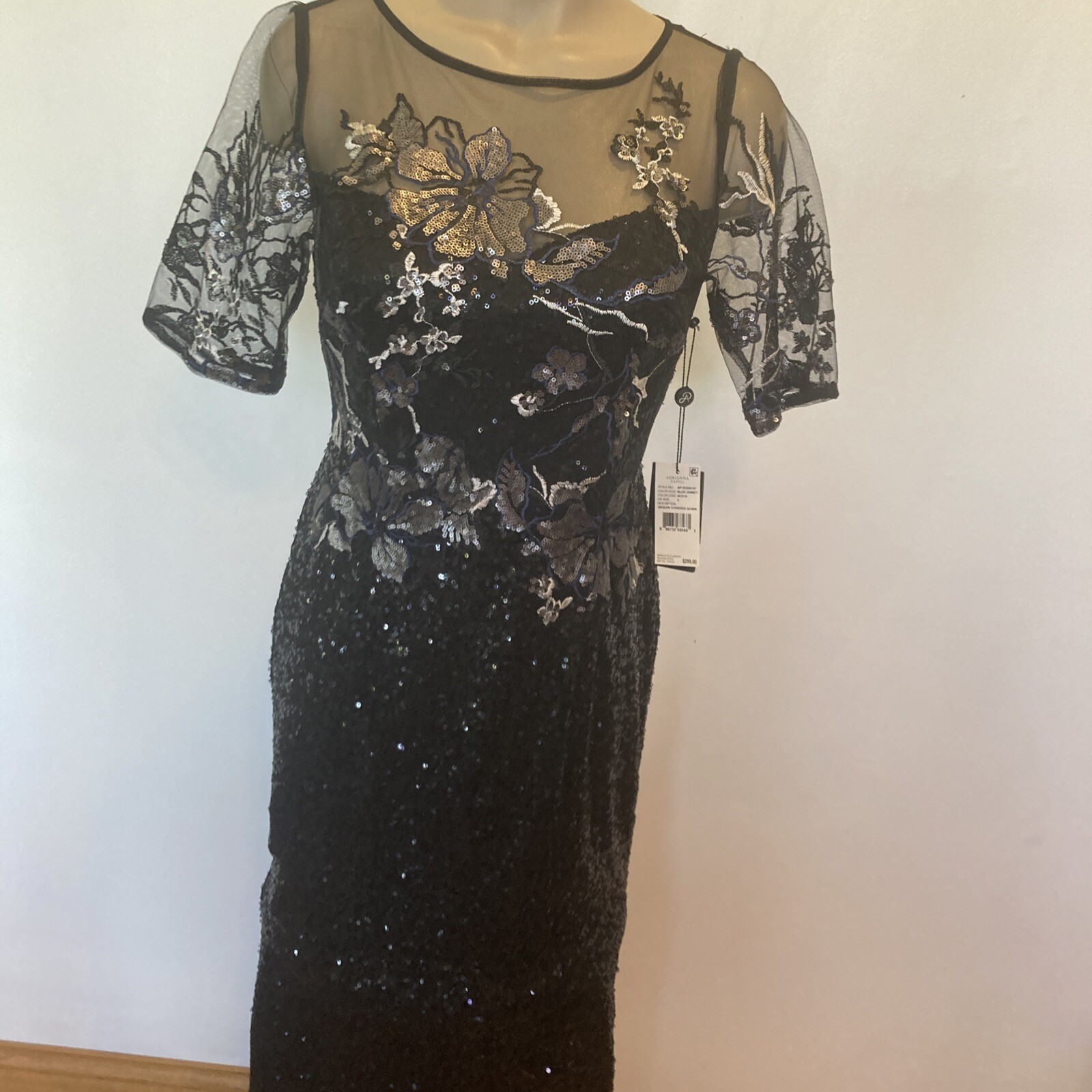 как выглядит New Adrianna Papell size 2 black sequin covered gown w/embroidery top dress фото