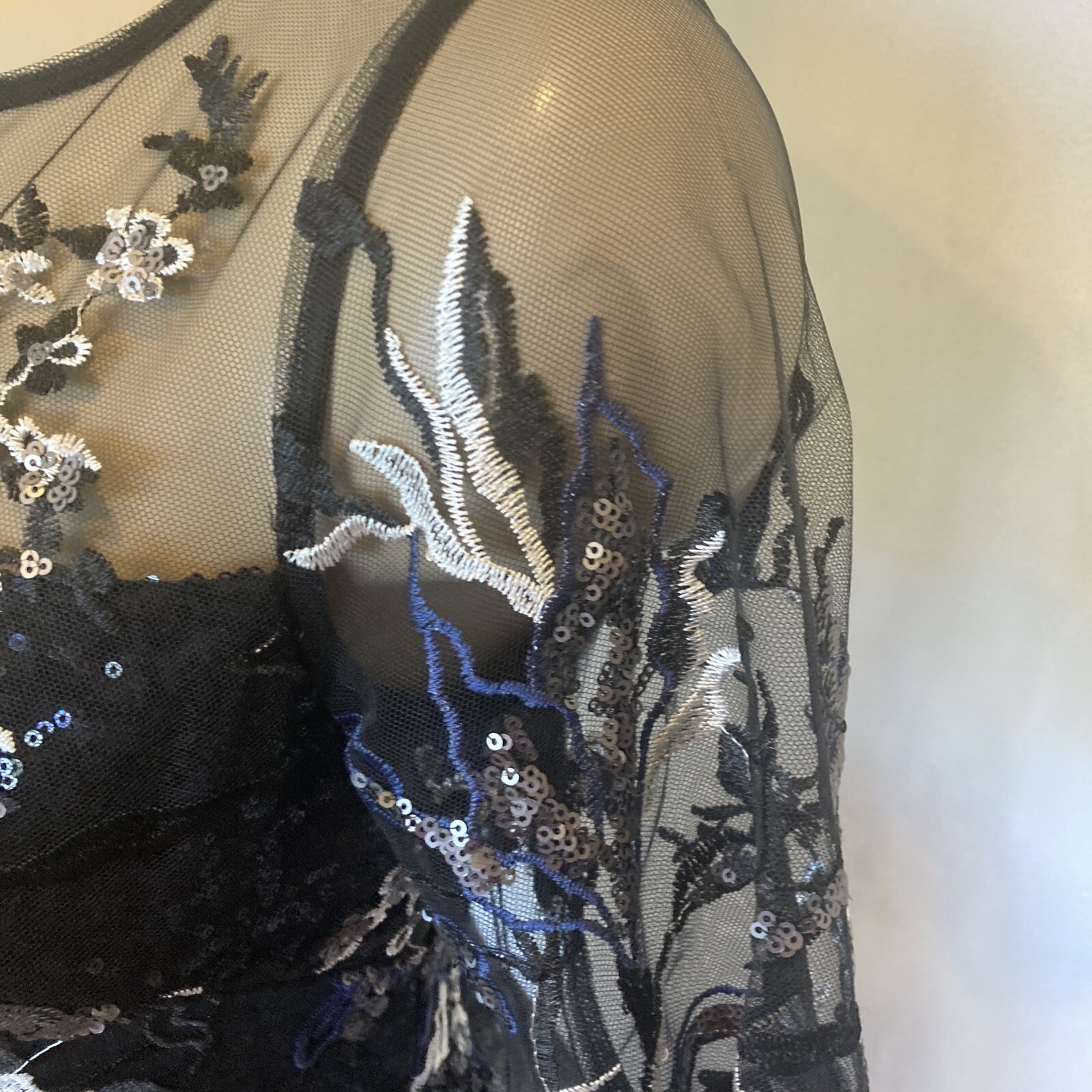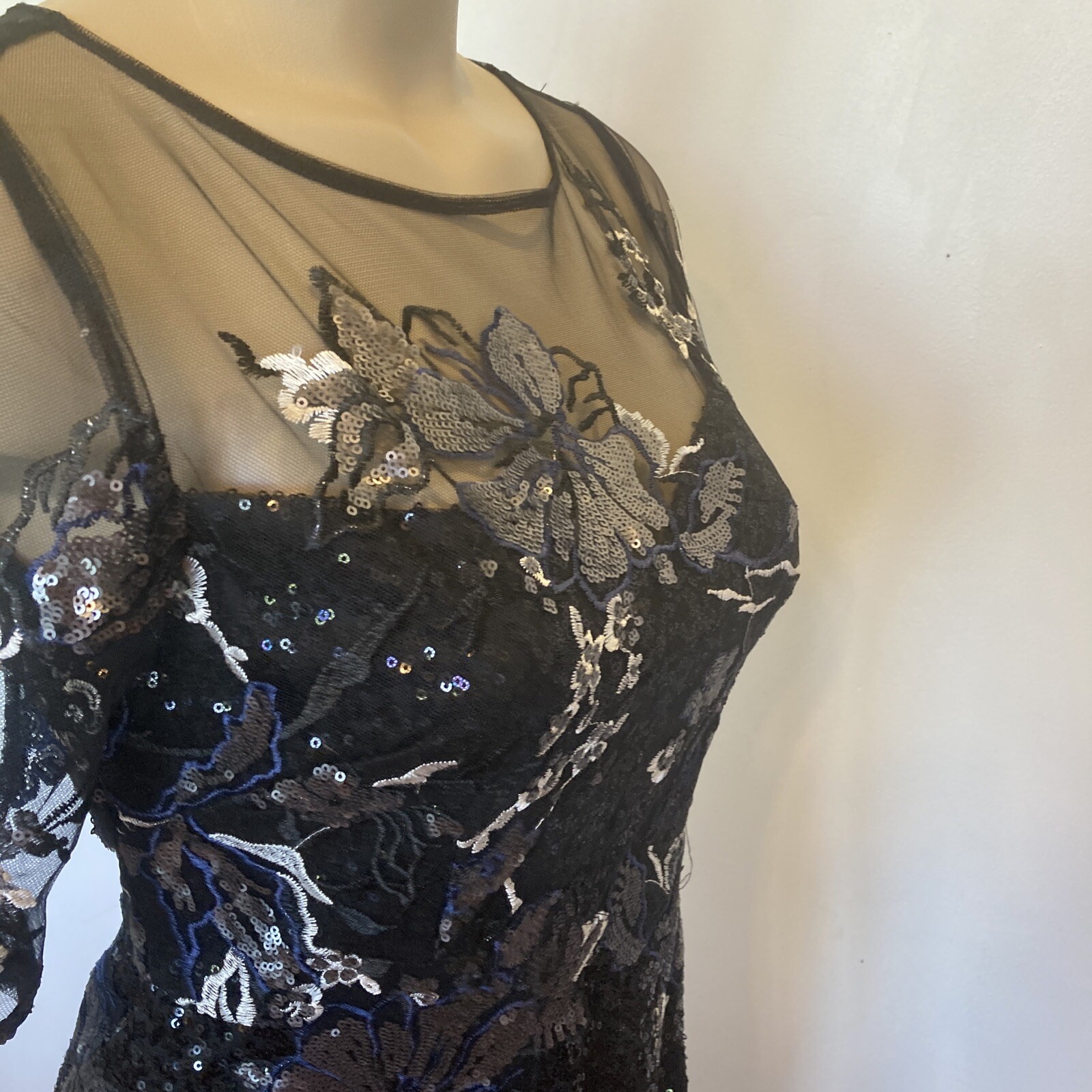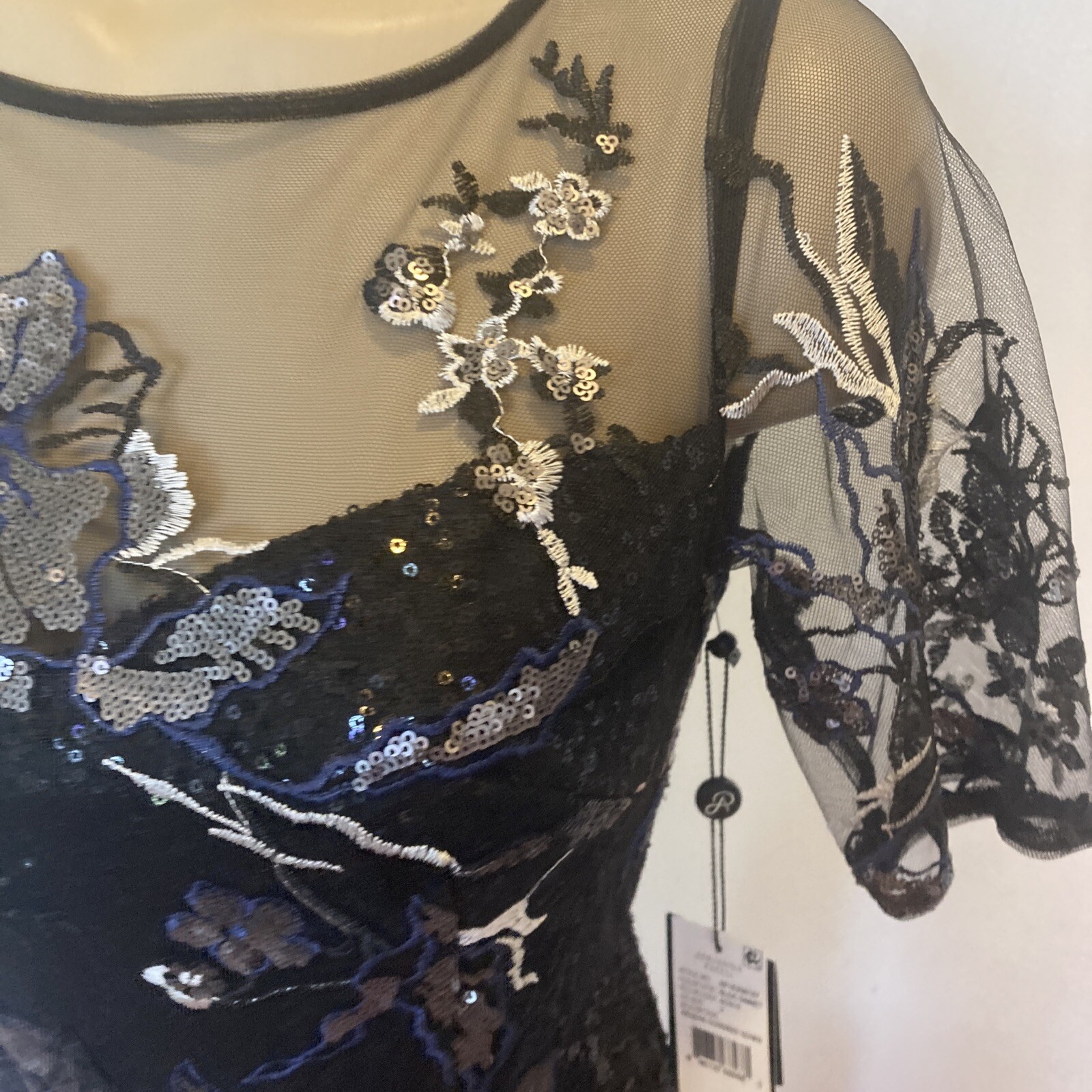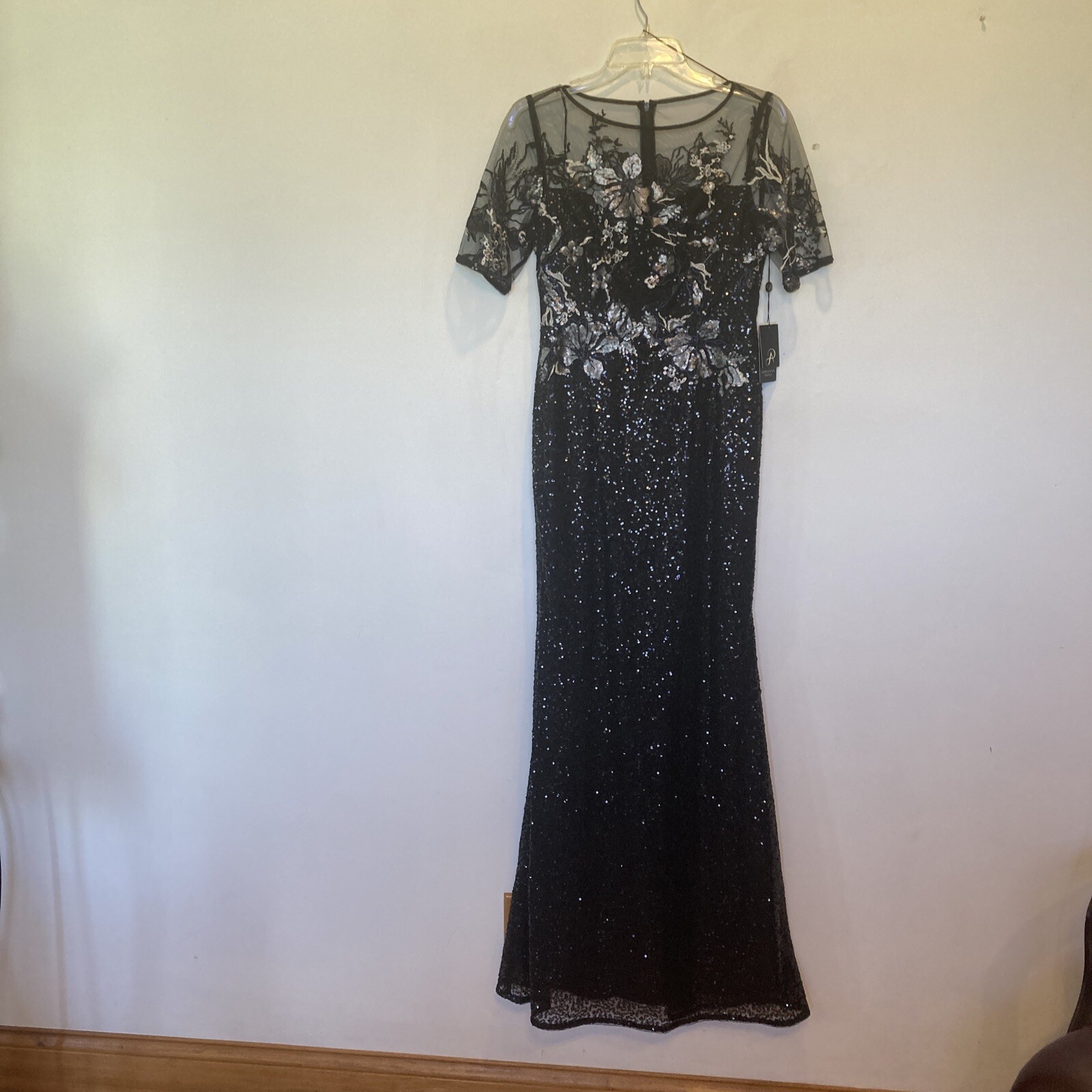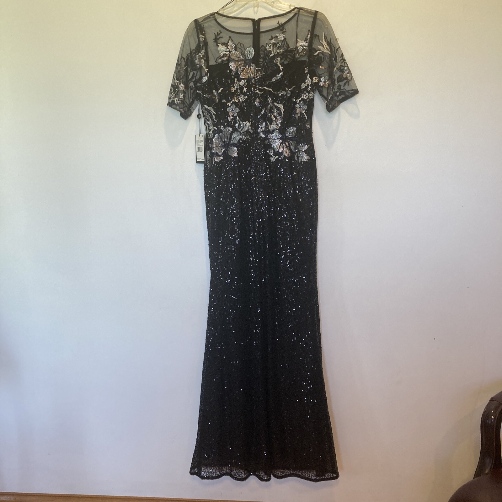 как выглядит New Adrianna Papell size 2 black sequin covered gown w/embroidery top dress фото