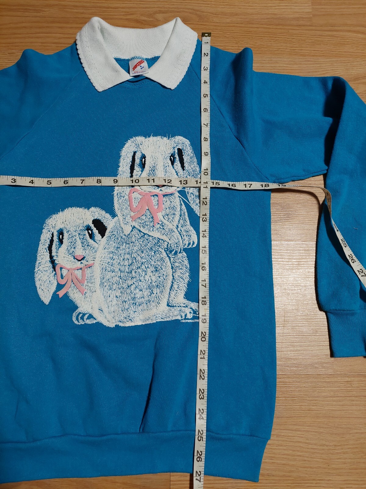 как выглядит Vintage Bunny Sweatshirt Womens Medium Jerzees Blue Nublend Crewneck фото