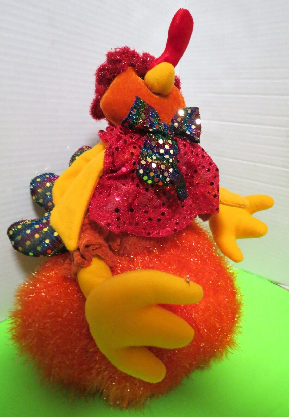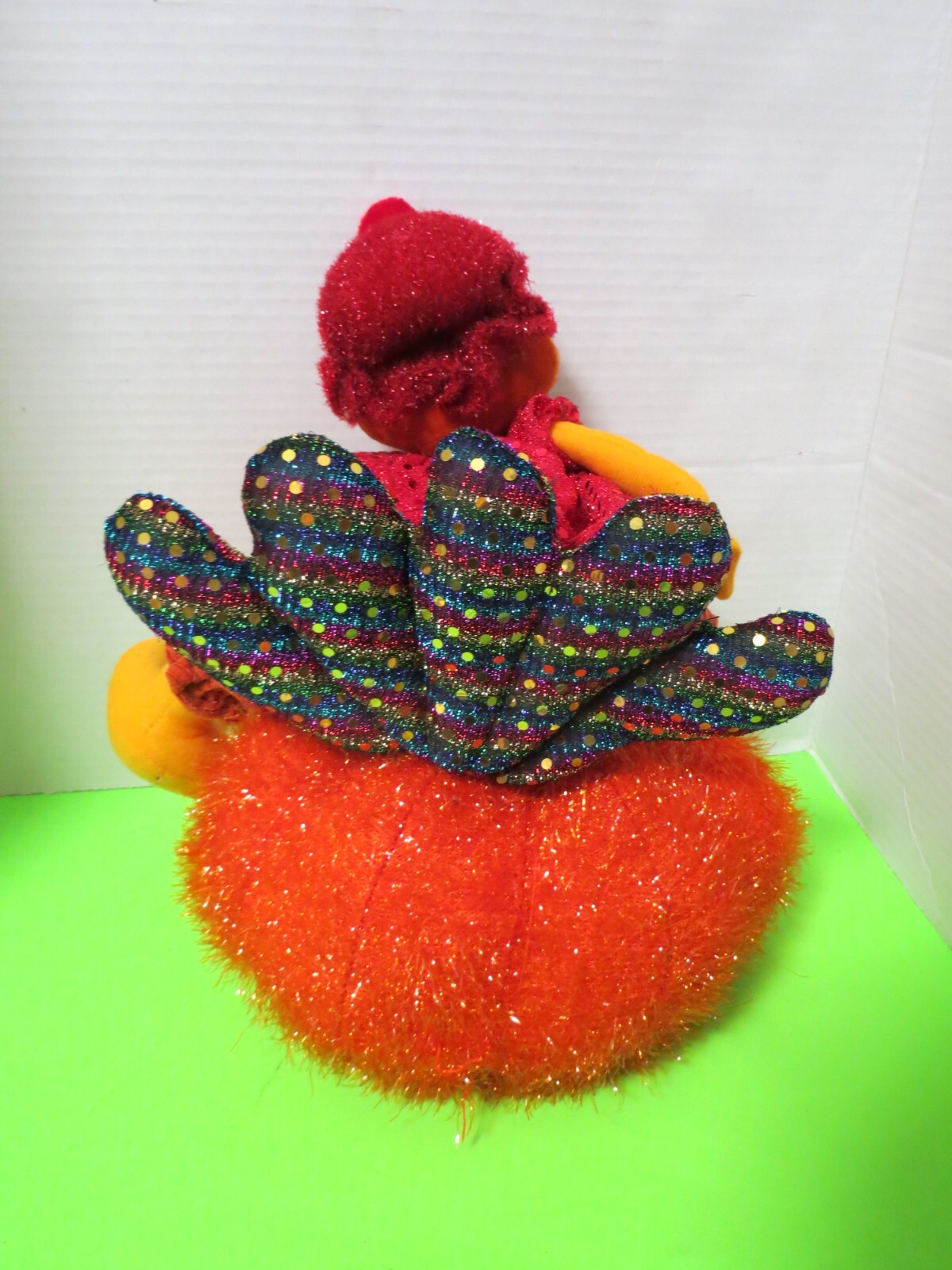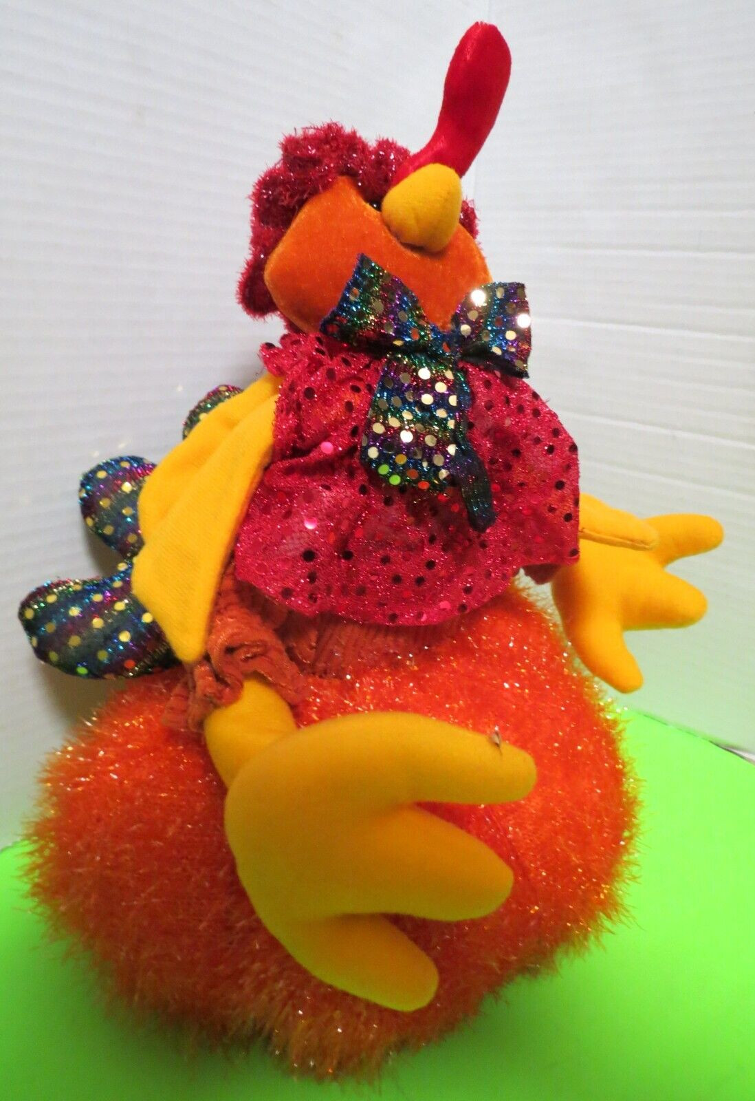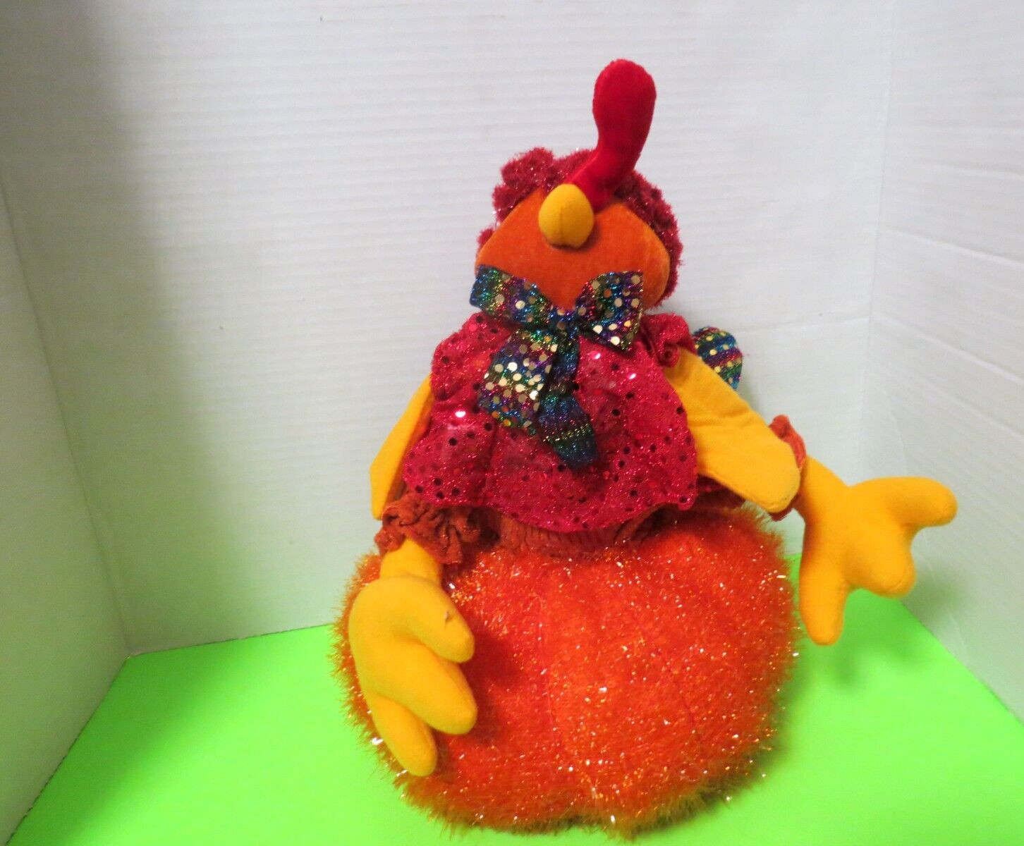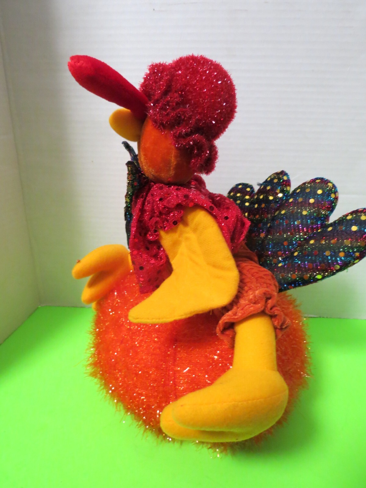 Turkey Sitting On Pumpkin Plush Sparkly Thanksgiving Decor 12"T