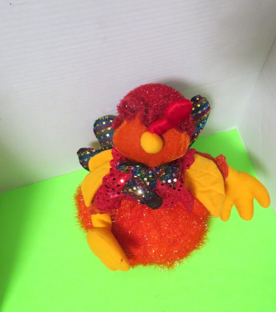 Turkey Sitting On Pumpkin Plush Sparkly Thanksgiving Decor 12T