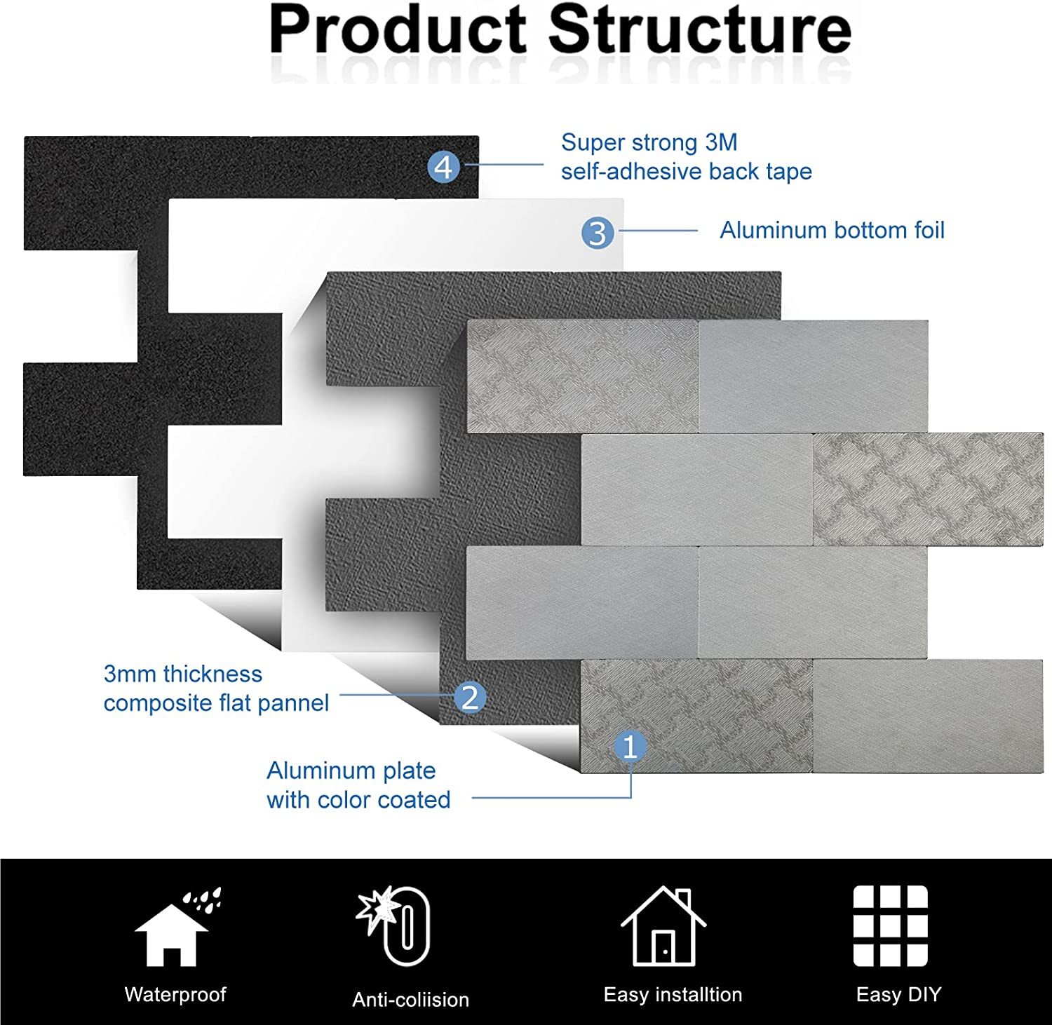 10-Sheet Peel and Stick Backsplash for Kitchen, Subway 3D Wall Panel, 12x12s