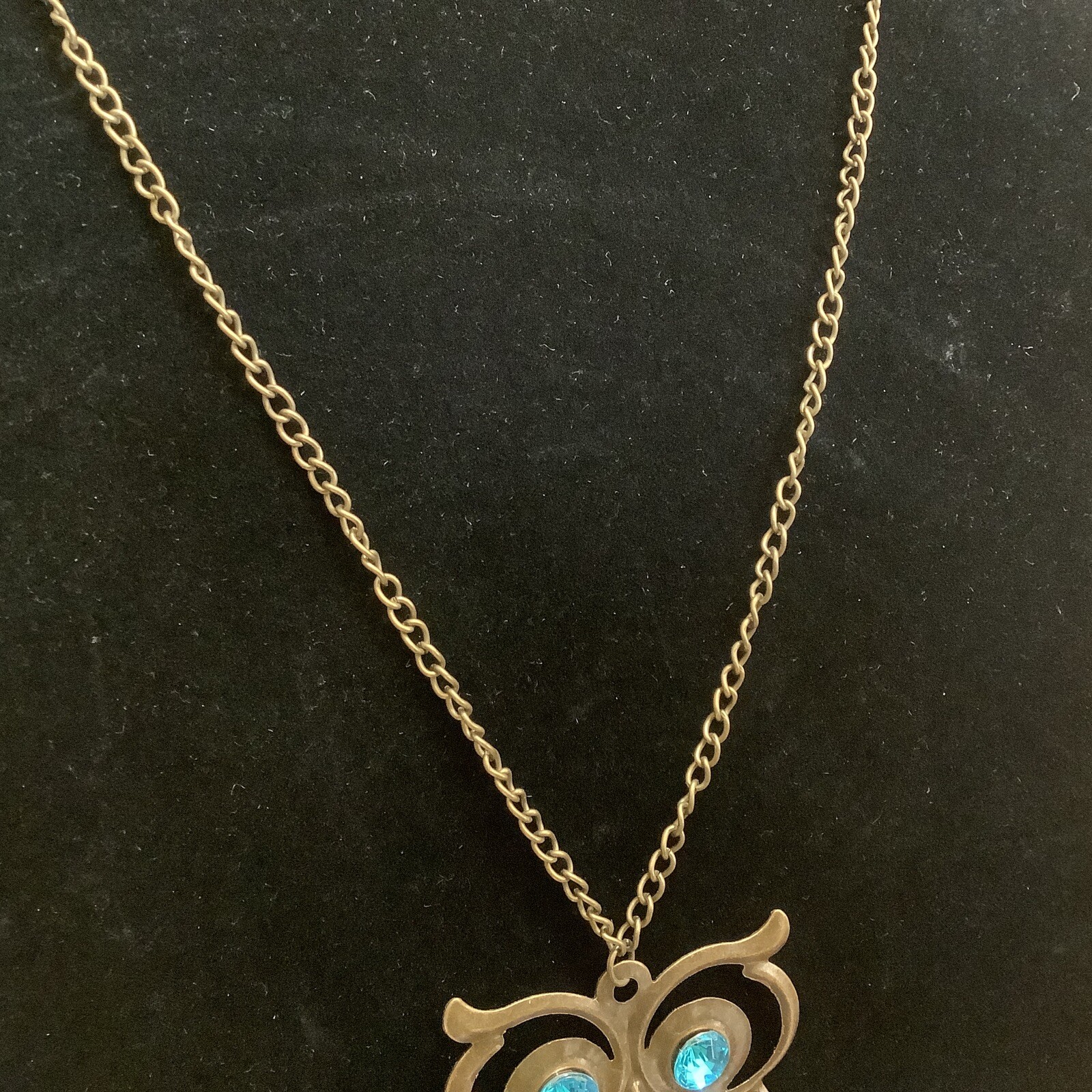как выглядит Metal Owl Necklace 23 L Colorful Jewels/Brushed Goldtone Finish Brand NEW фото