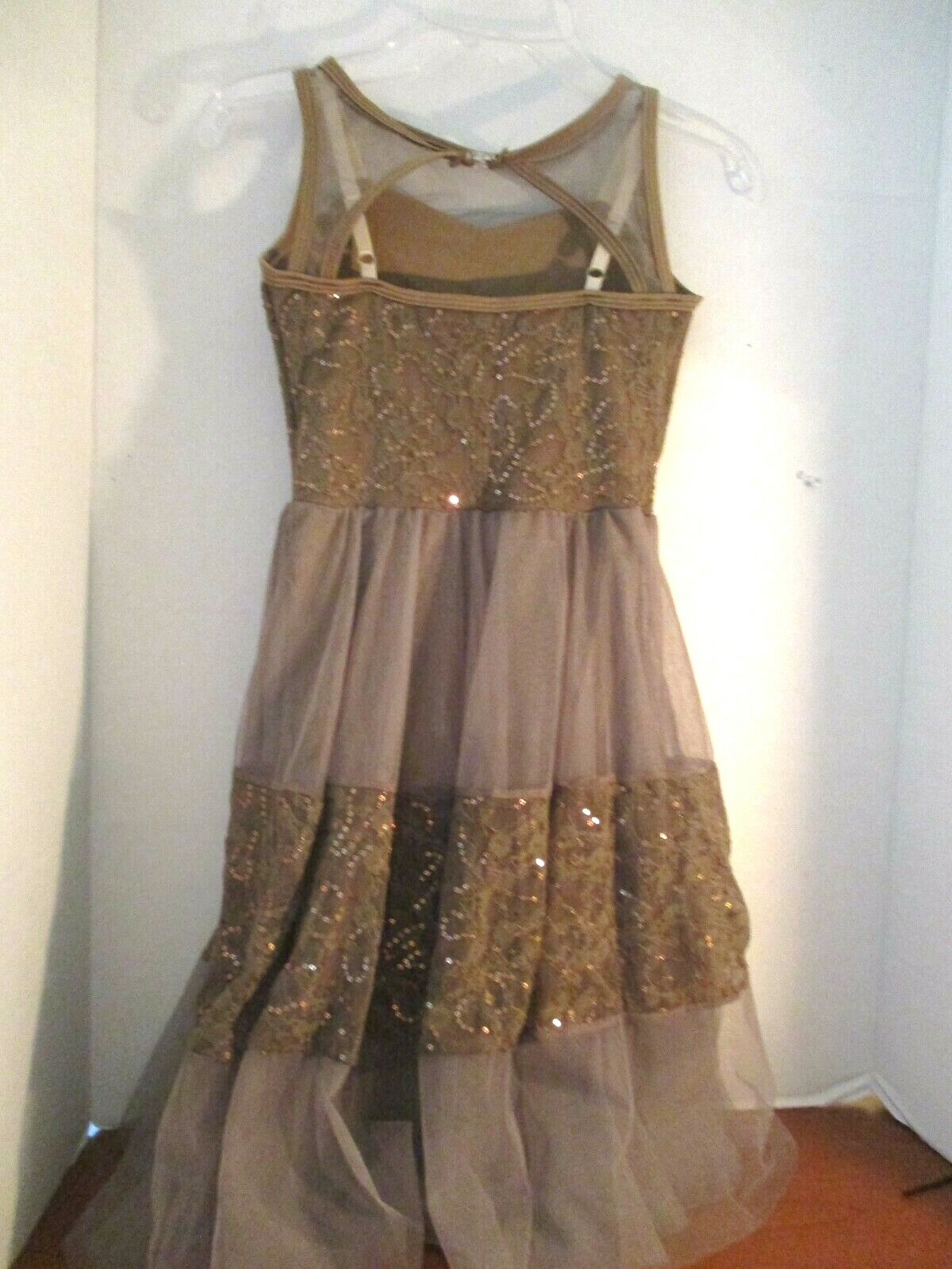 как выглядит CURTAIN CALL Brown LACE SEQUIN TULLE DANCE DRESS Size CHILD LARGE фото